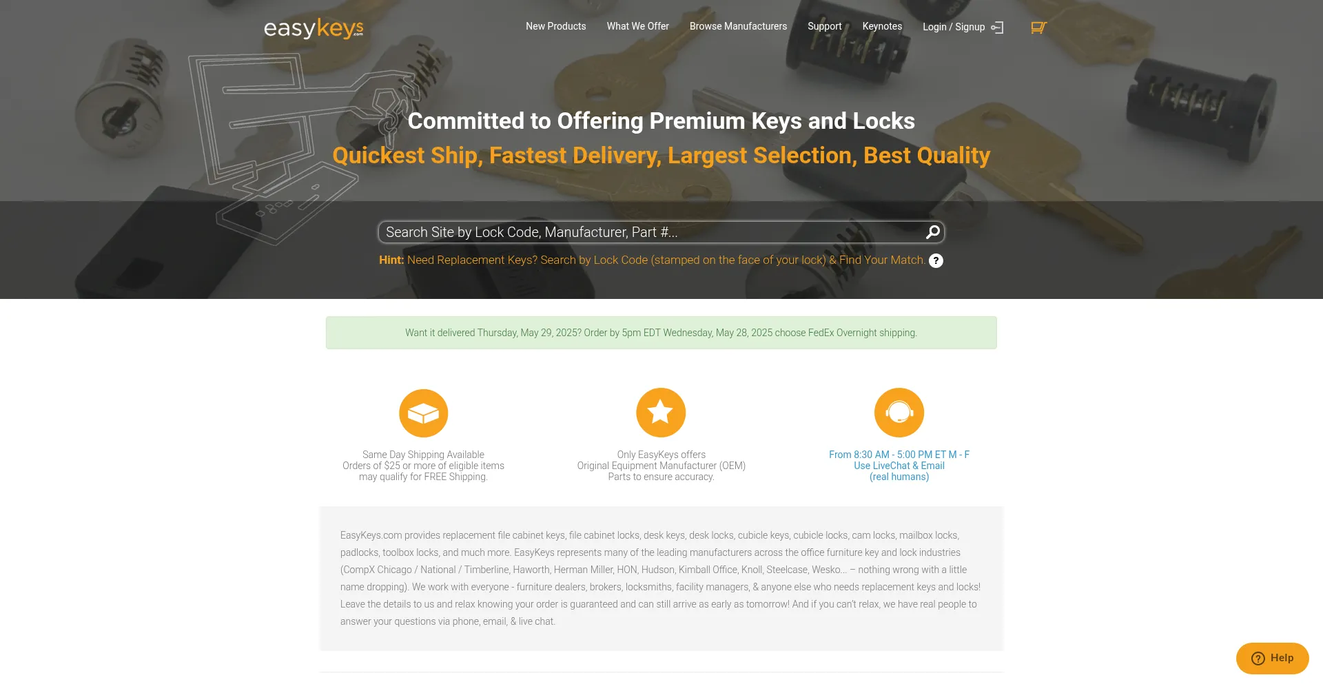 EasyKeys.com, founded in 2002, provides a hassle-free process for ordering replacement keys and lock cores with fast & free shipping options.