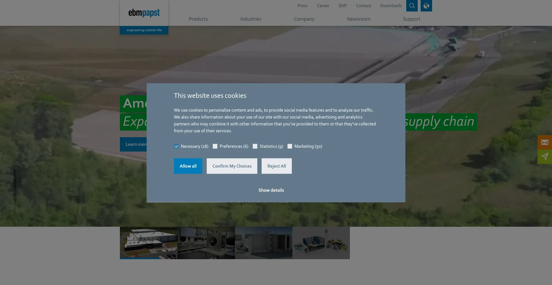 Le site web implémente des mécanismes de consentement aux cookies en conformité avec les réglementations de confidentialité telles que RGPD ou CCPA. Cela démontre que ebmpapst.com adhÚre aux standards de protection des données et fournit aux utilisateurs un contrÎle sur les pratiques de collecte de données personnelles.