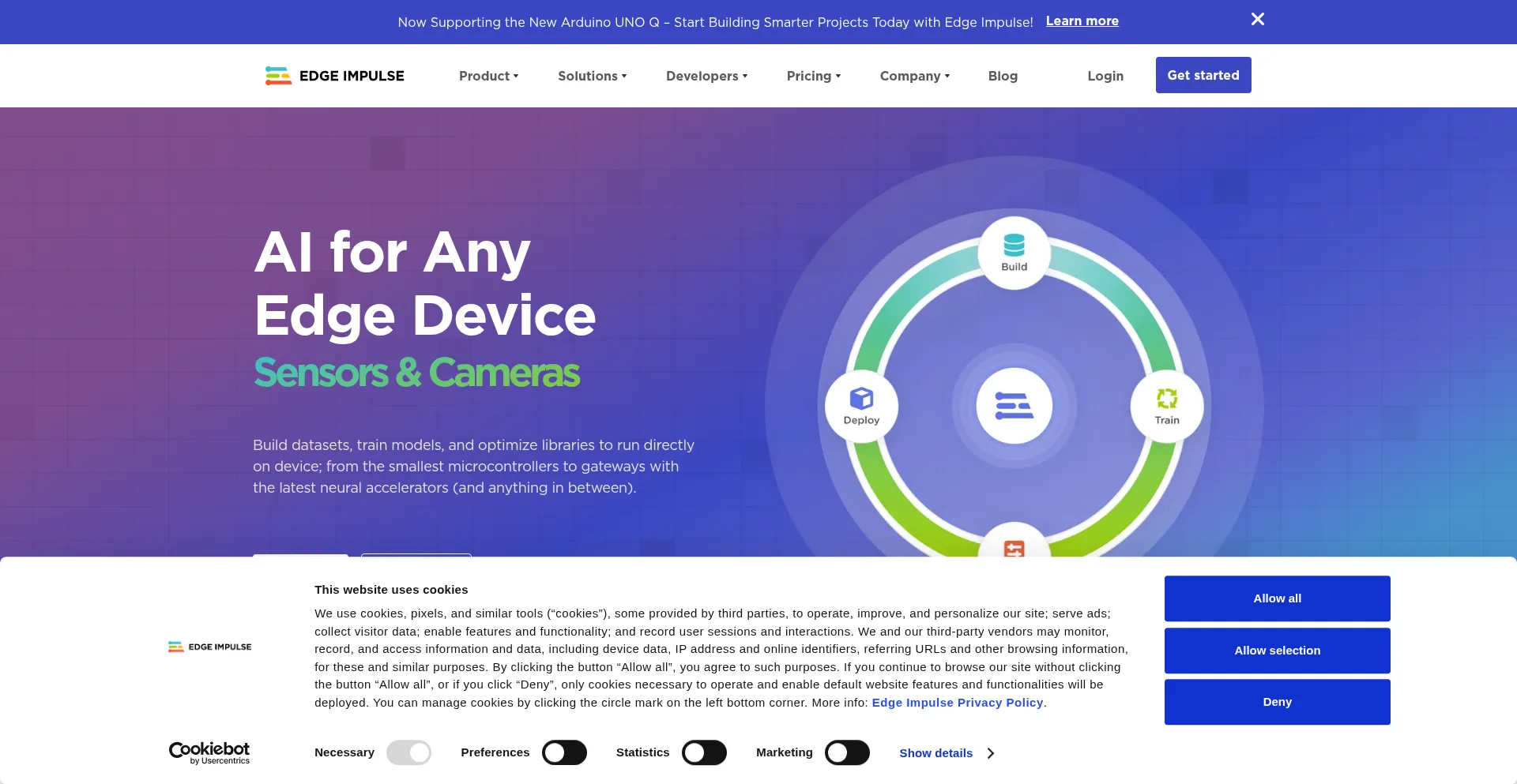 Le site web implémente des mécanismes de consentement aux cookies en conformité avec les réglementations de confidentialité telles que RGPD ou CCPA. Cela démontre que edgeimpulse.com adhÚre aux standards de protection des données et fournit aux utilisateurs un contrÎle sur les pratiques de collecte de données personnelles.