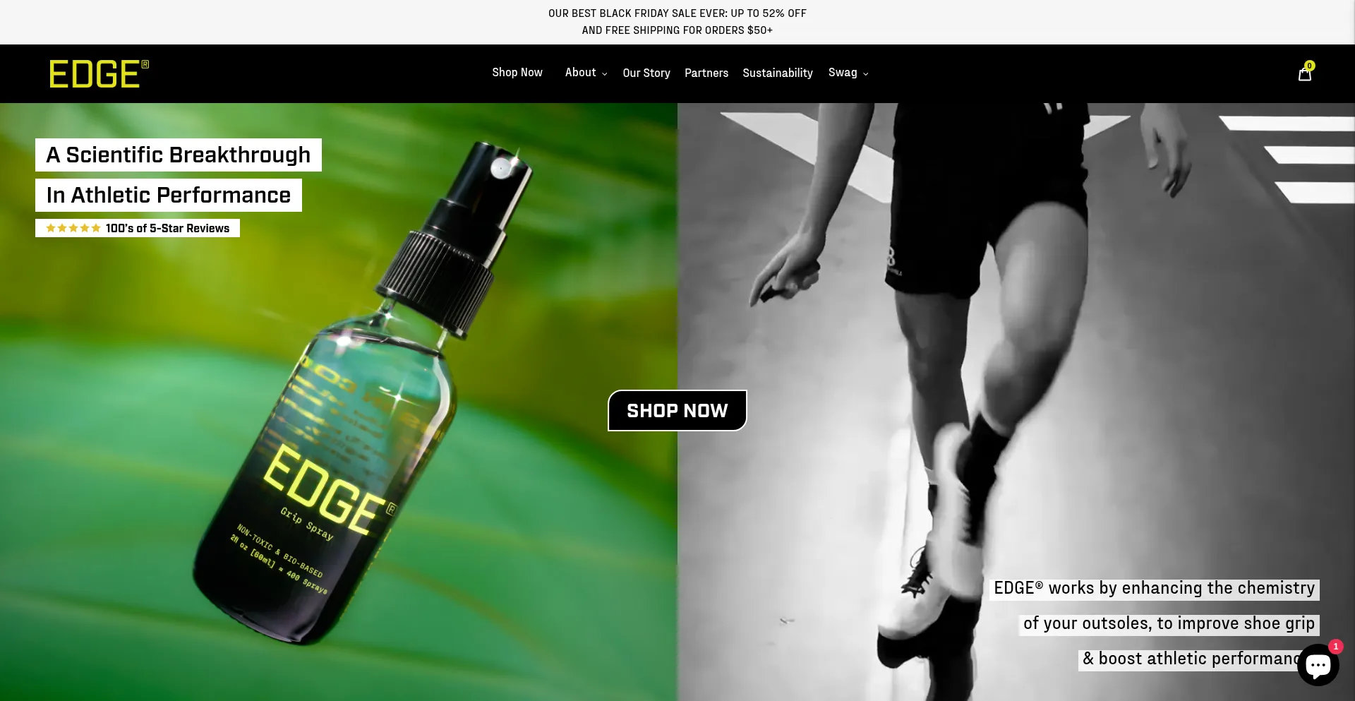 Spray your shoe soles with EDGEÂź for a lab proven 25%+ traction boost. Fast drying, non-toxic, no stickiness or residue.