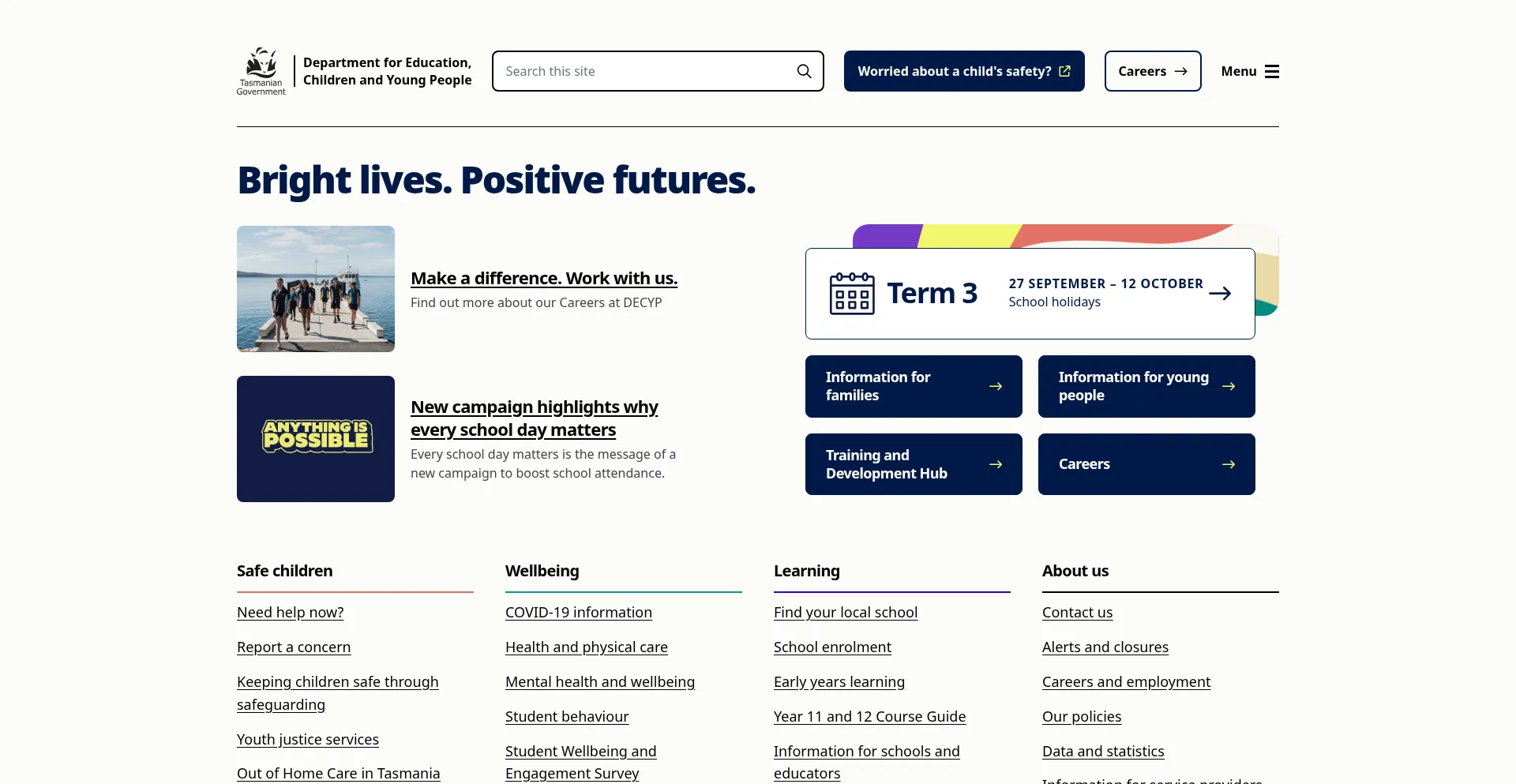 We work to deliver better outcomes for all Tasmanian children and young people, especially our most vulnerable.