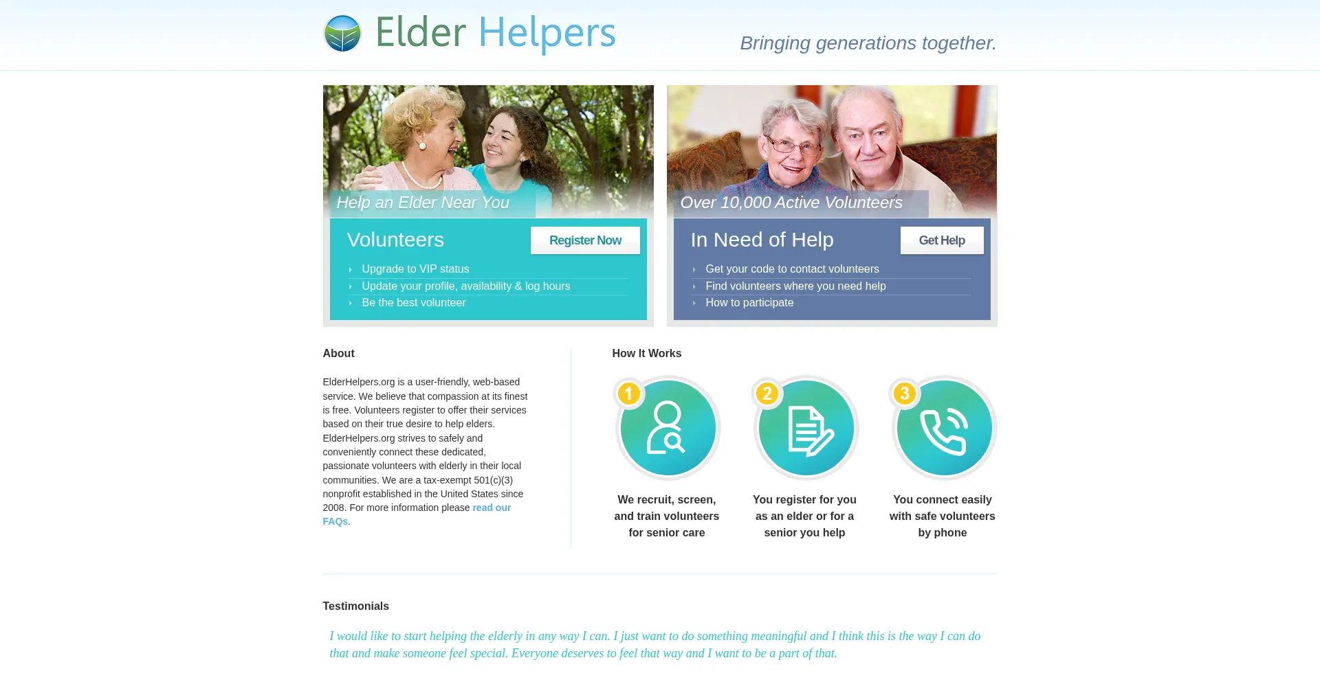 Elder Helpers: volunteer companions and caregivers are ready to help.