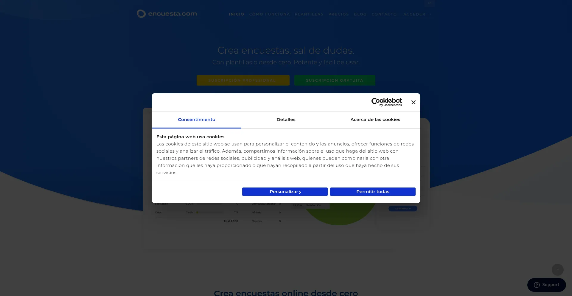 Le site web implémente des mécanismes de consentement aux cookies en conformité avec les réglementations de confidentialité telles que RGPD ou CCPA. Cela démontre que encuesta.com adhÚre aux standards de protection des données et fournit aux utilisateurs un contrÎle sur les pratiques de collecte de données personnelles.