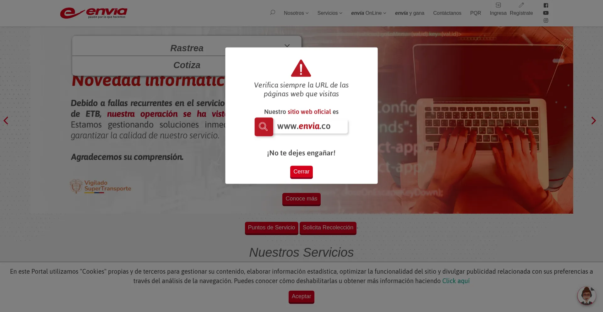 La présence de liens de médias sociaux sur le site web indique que envia.co maintient des comptes officiels sur les médias sociaux, ce qui est un signe positif de crédibilité et d'engagement.