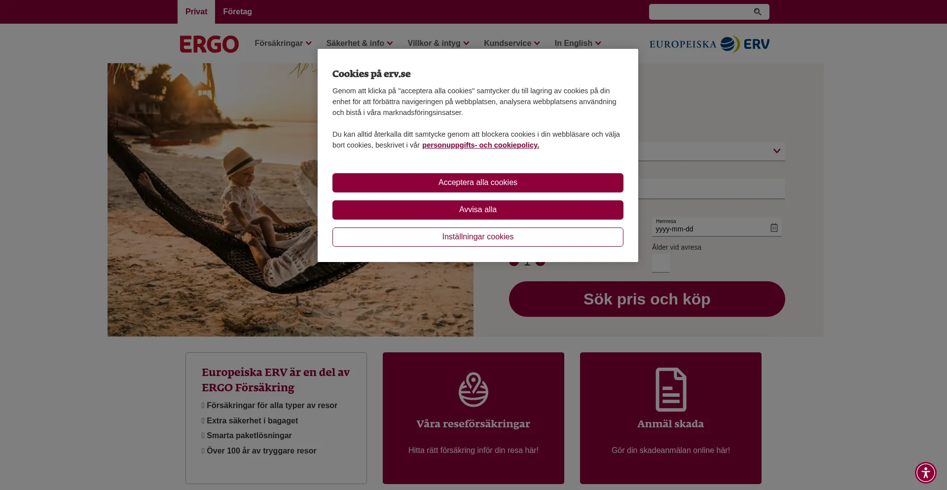 ReseförsÀkring för privatpersoner | Europeiska ERV
