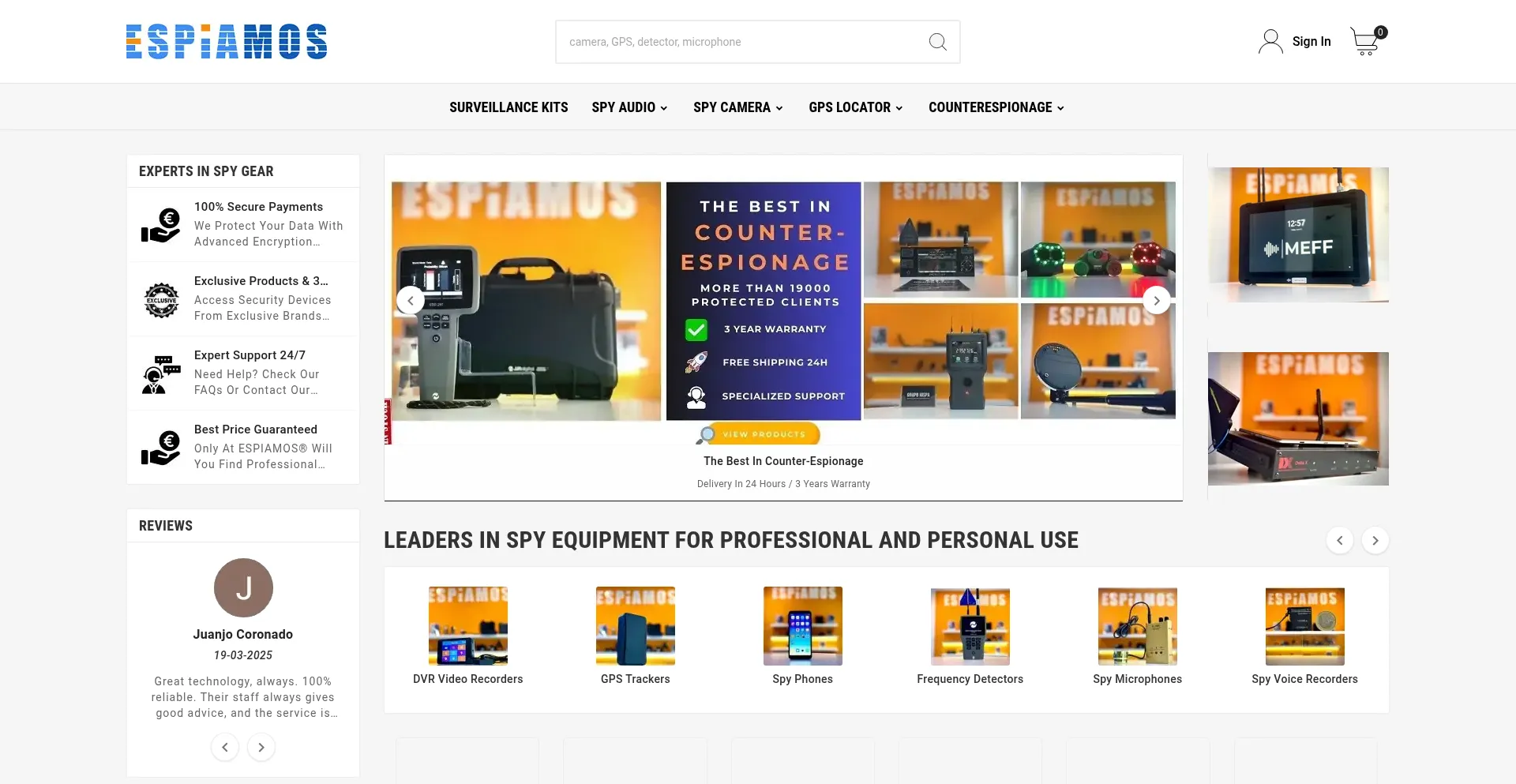 Buy your spy camera, GPS tracker or voice recorder at ESPIAMOSÂź. Advanced spy tech with 3-year warranty and expert advice.