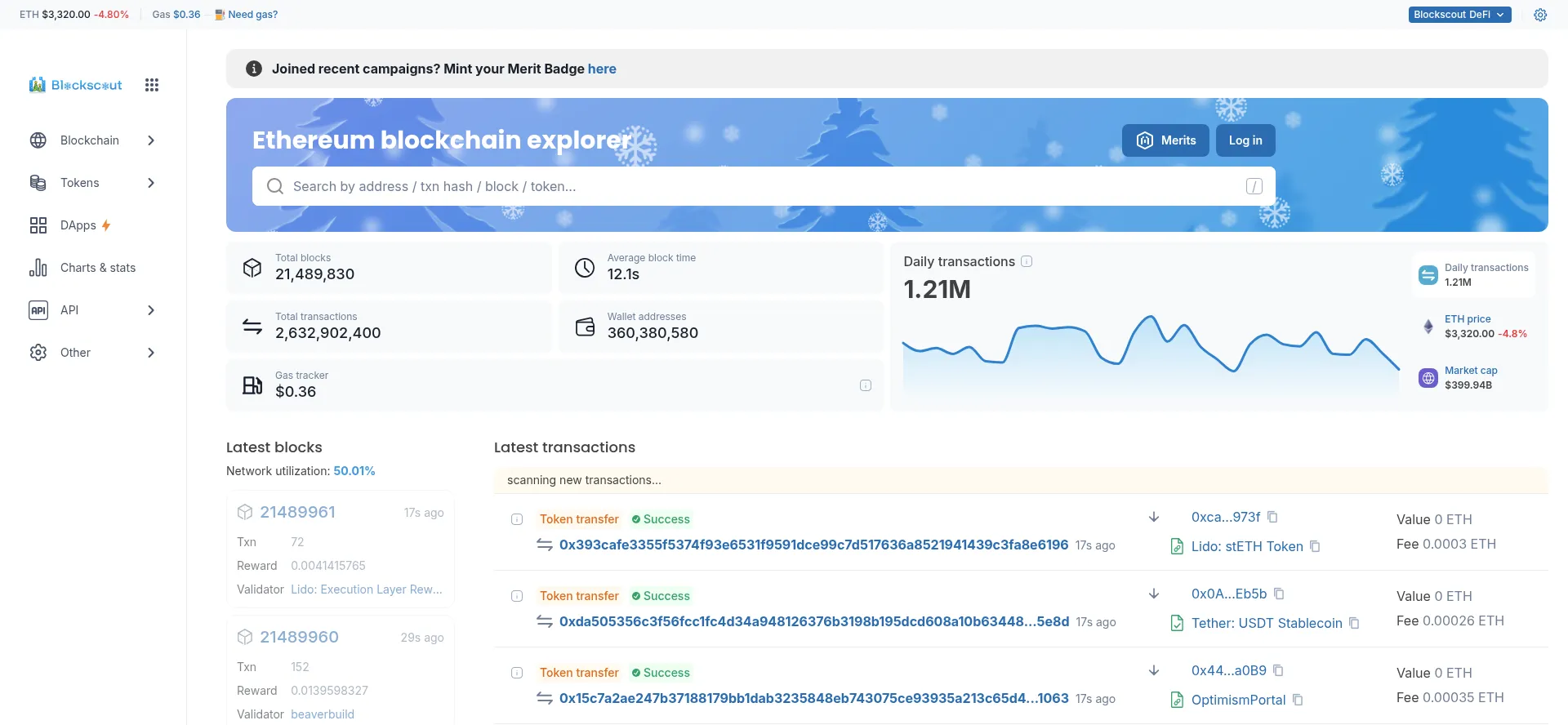 Ethereum blockchain explorer - View Ethereum stats | Blockscout