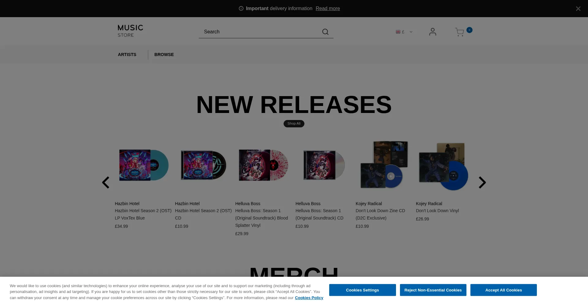 Discover exclusive and official merchandise from your favourite artists. Vinyl, CDs, accessories, and more; our range reflects your love for music. Shop now and elevate your mus...