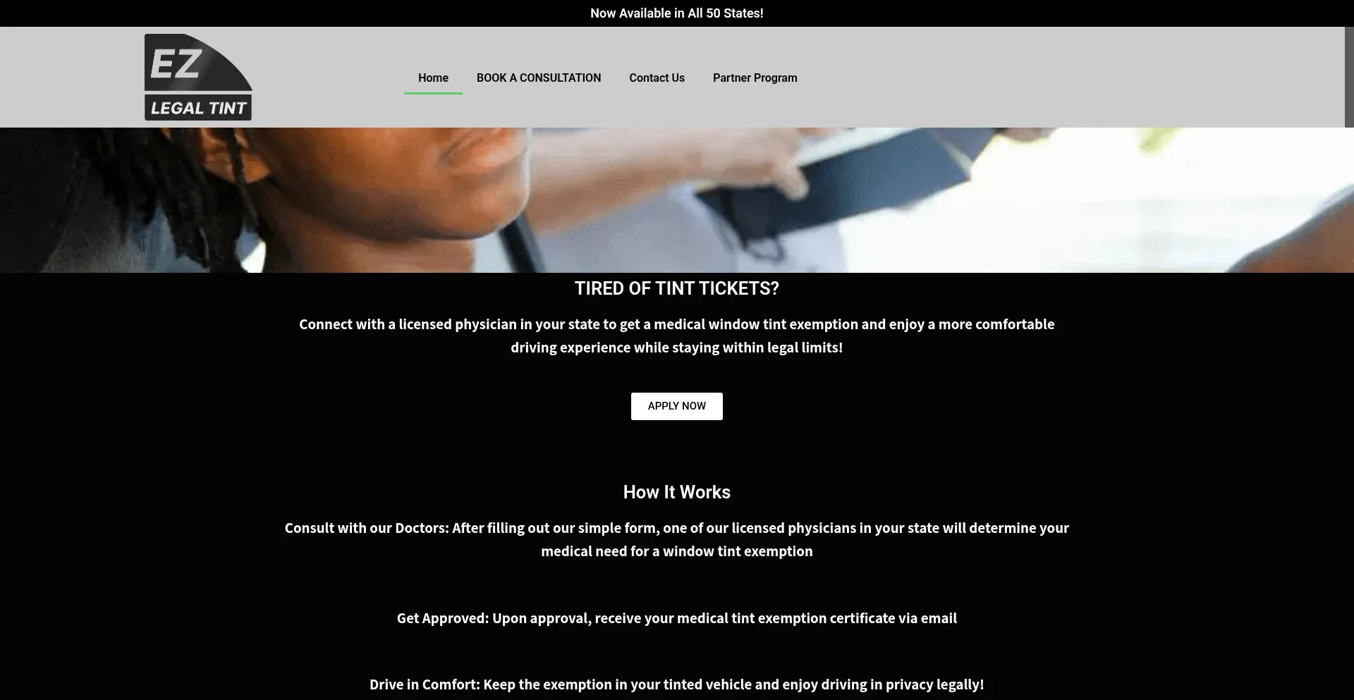 Connect with a licensed physician in your state to get a medical window tint exemption and enjoy a more comfortable driving experience while staying within legal limits!