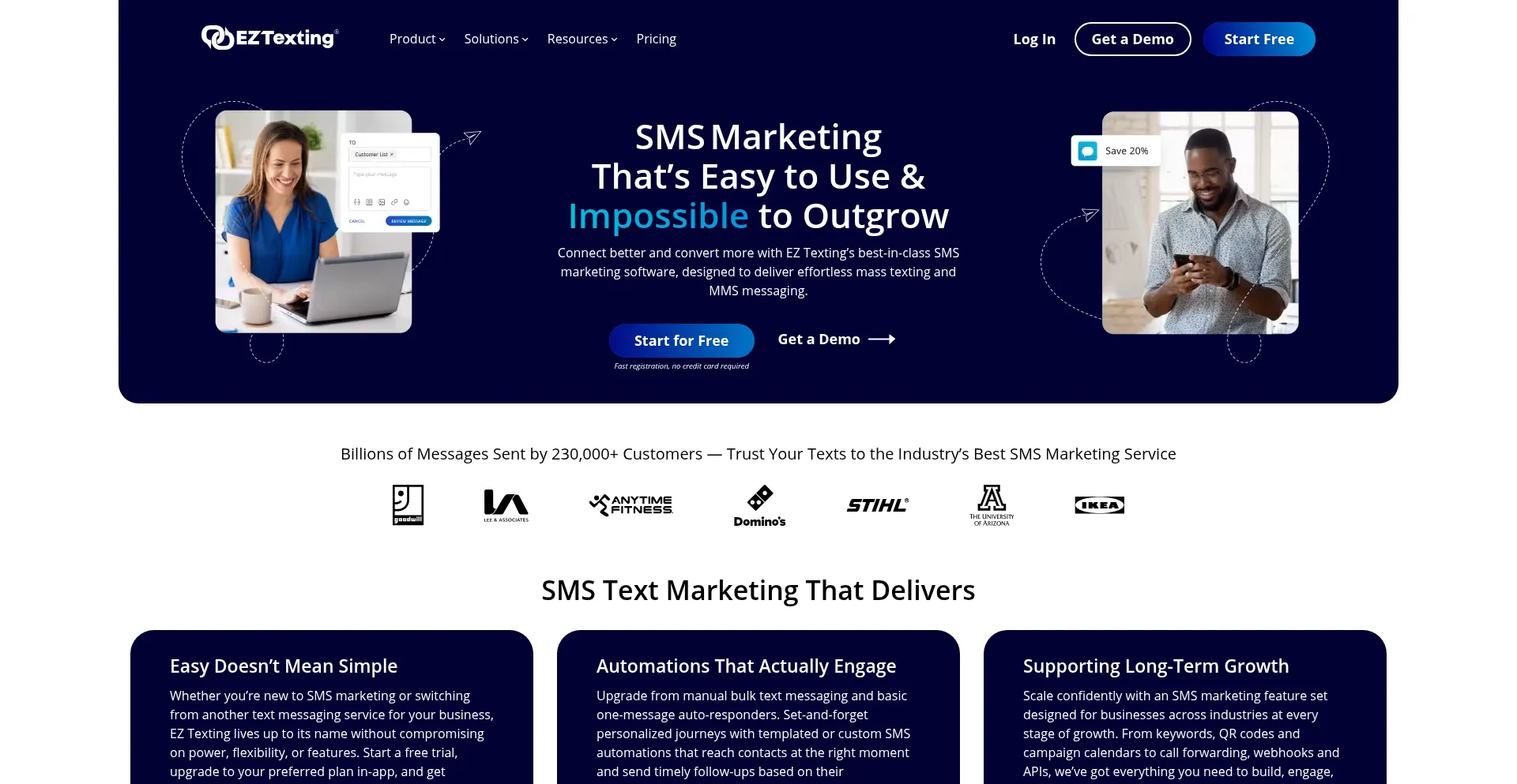 Featuring fast registration and powerful tools, EZ Texting is the best mass texting service for sending bulk SMS marketing messages and MMS messaging. Start your free trial today!