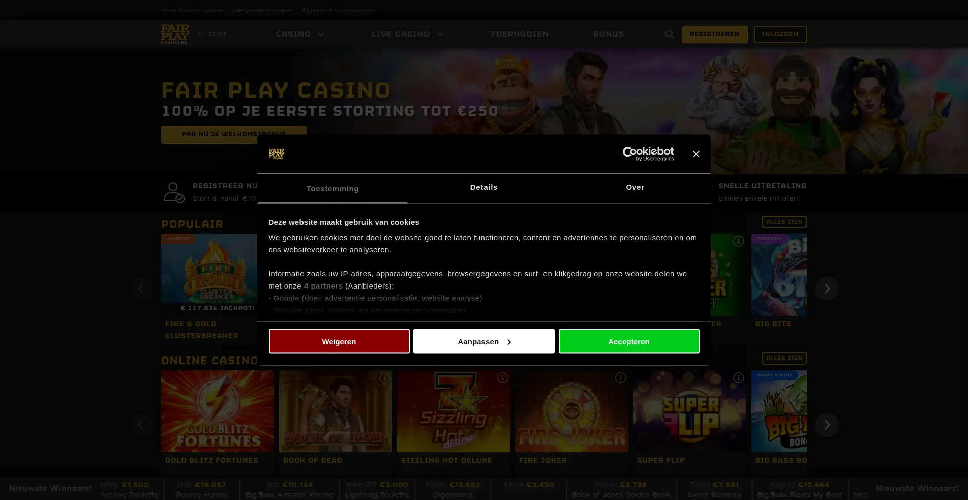Profiteer van de beste casino bonussen bij Fair Play Online Casino. Pak je welkomstbonus tot €250 en profiteer van free spins en wekelijkse promoties.