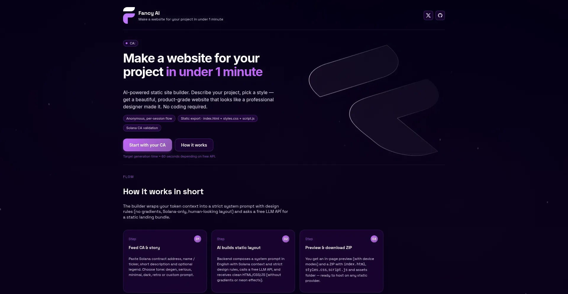Fancy AI · Make a website for your project in under 1 minute
