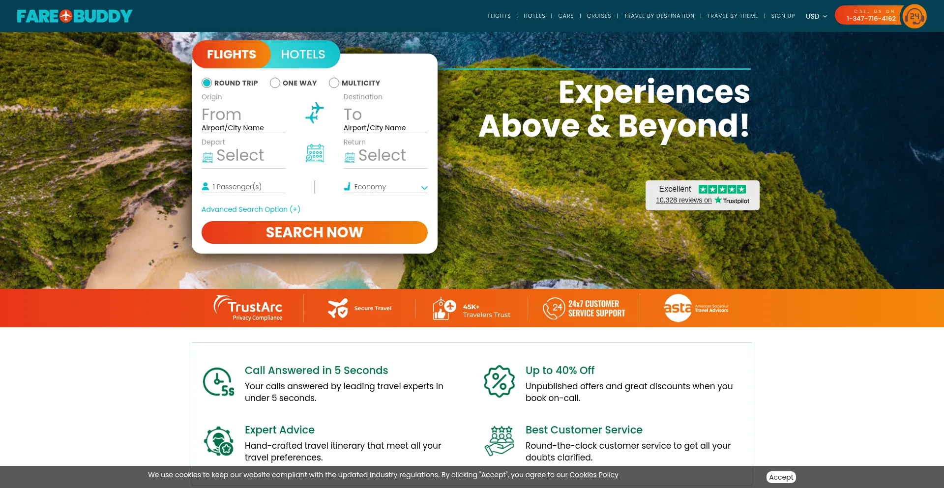With Fareobuddy, book cheap flights and hotels all over the world to enjoy great savings. For bookings, call now or book online.
