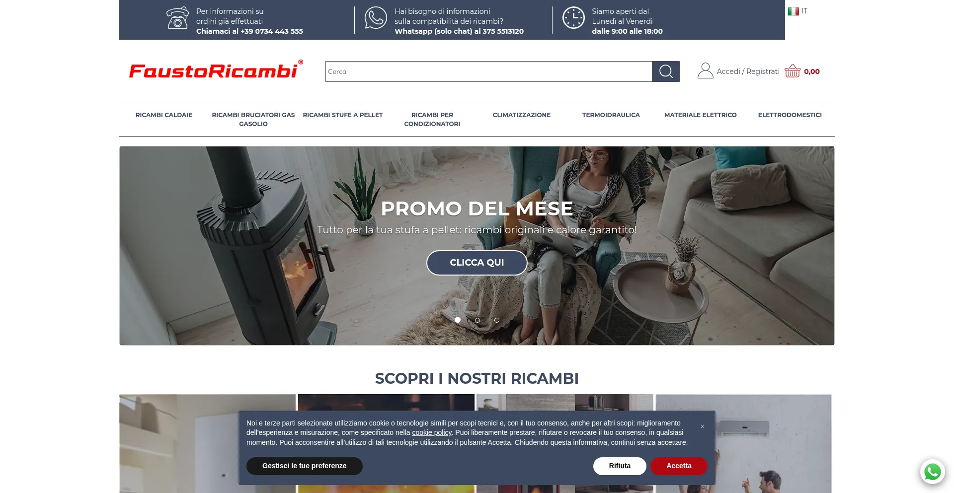 FAUSTORICAMBI sarà il tuo punto di riferimento per ricambi per Caldaie, Bruciatori, Stufe, Elettrodomestici, Climatizzatori, Impianti Solari e in generale per tutti i prodott...