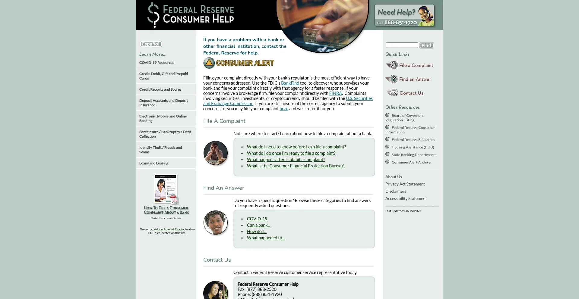 If you have a problem with a bank or other financial institution, contact the Federal Reserve for help.