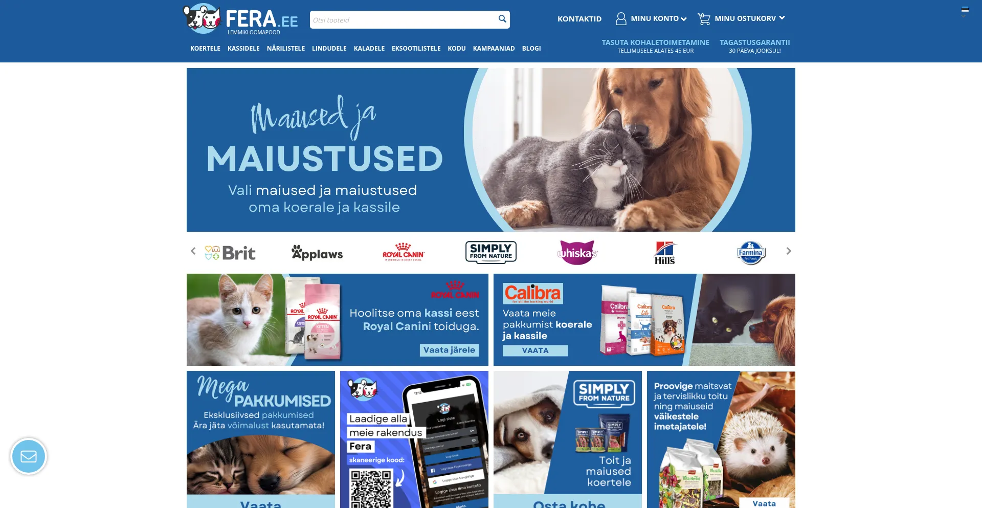 Fera.ee parim lemmikloomapood sinu lemmikloomale! Suur valik koera- ja kassitoidu kaubamÀrke ning lemmikloomade mÀnguasju ja tarvikuid.