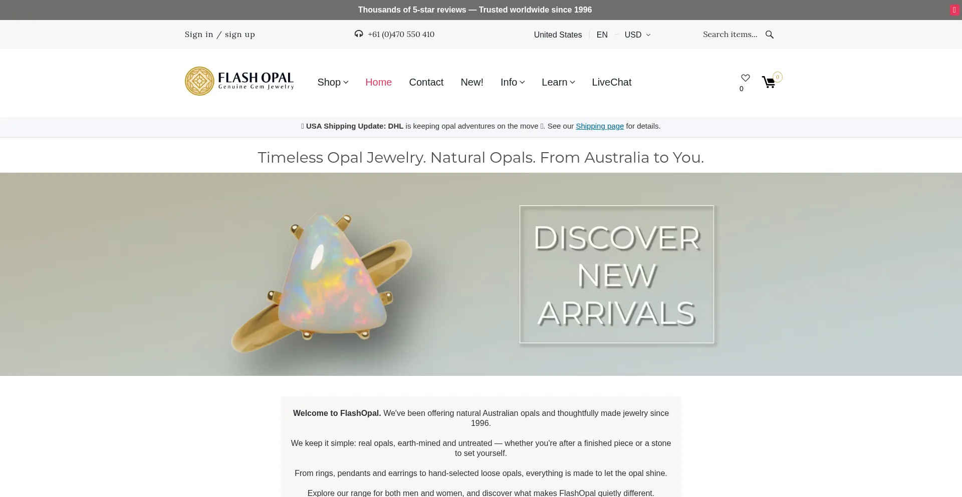 Discover genuine opal jewelry for men and women at FlashOpal. Trusted since 1996 for natural opals, expertly made rings, pendants, and earrings — plus free worldwide shipping.