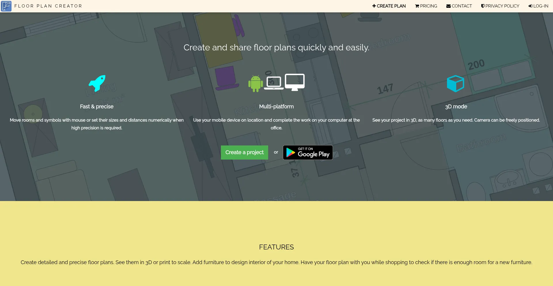 floorplancreator.net propose une application mobile pour les appareils Android, indiquant une présence de plateforme étendue au-delà des services basés sur le web.