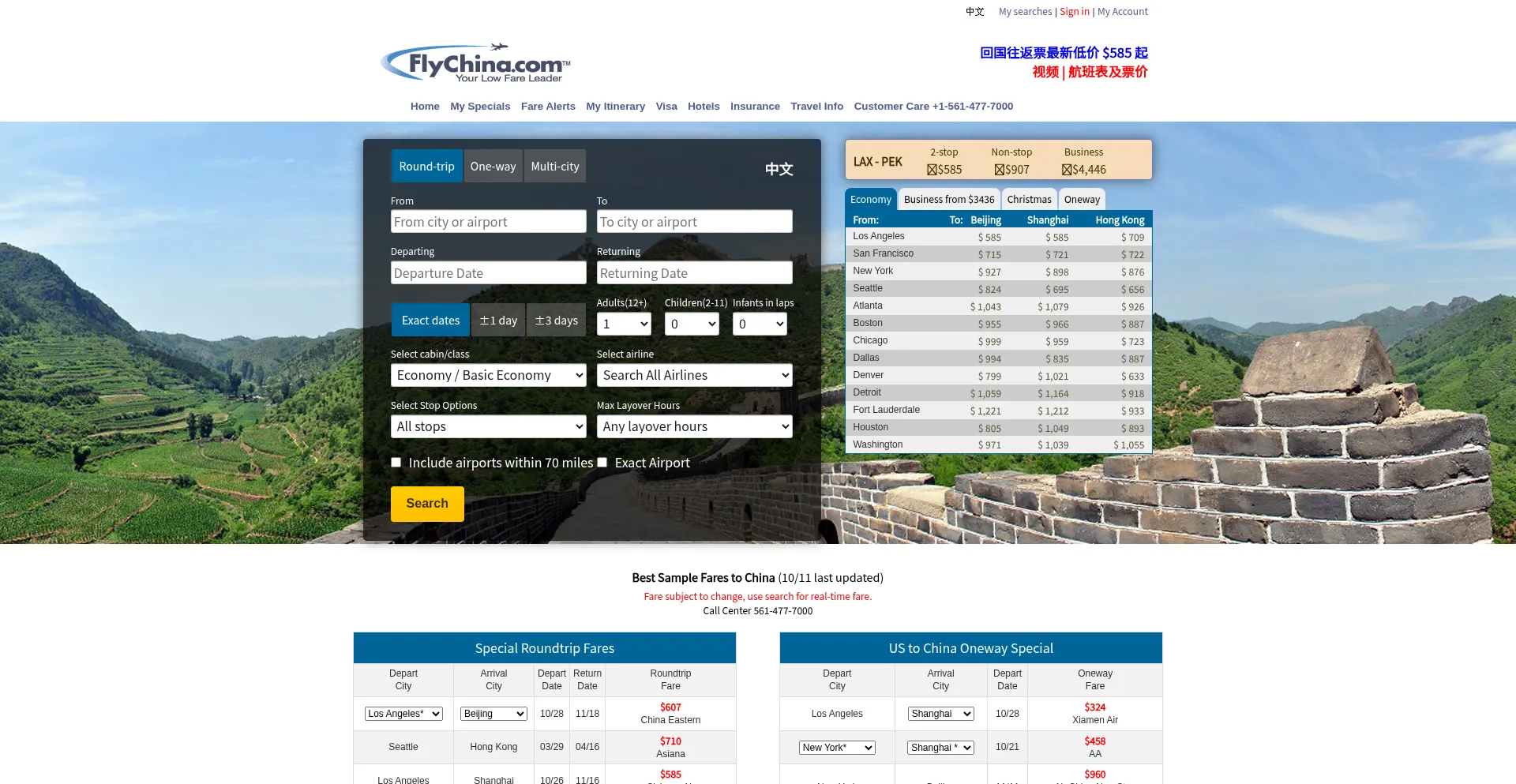 Low fare airline tickets to China, Hong Kong and Taiwan. FlyChina.com - Your unique online Chinese Travel Agency. The only kind with personalized customer service. We are your ...