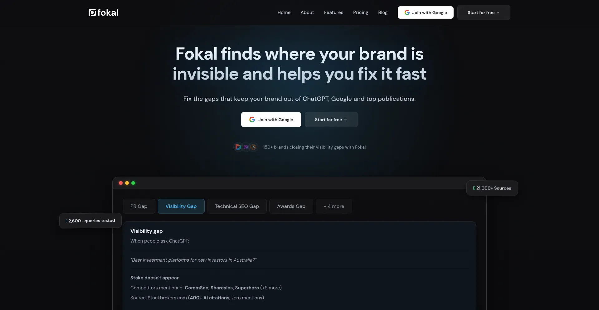 Uncover your online visibility gaps. Find exactly where your brand is missing and get the solutions to close each gap. Fokal reveals visibility gaps across search engines, AI pl...