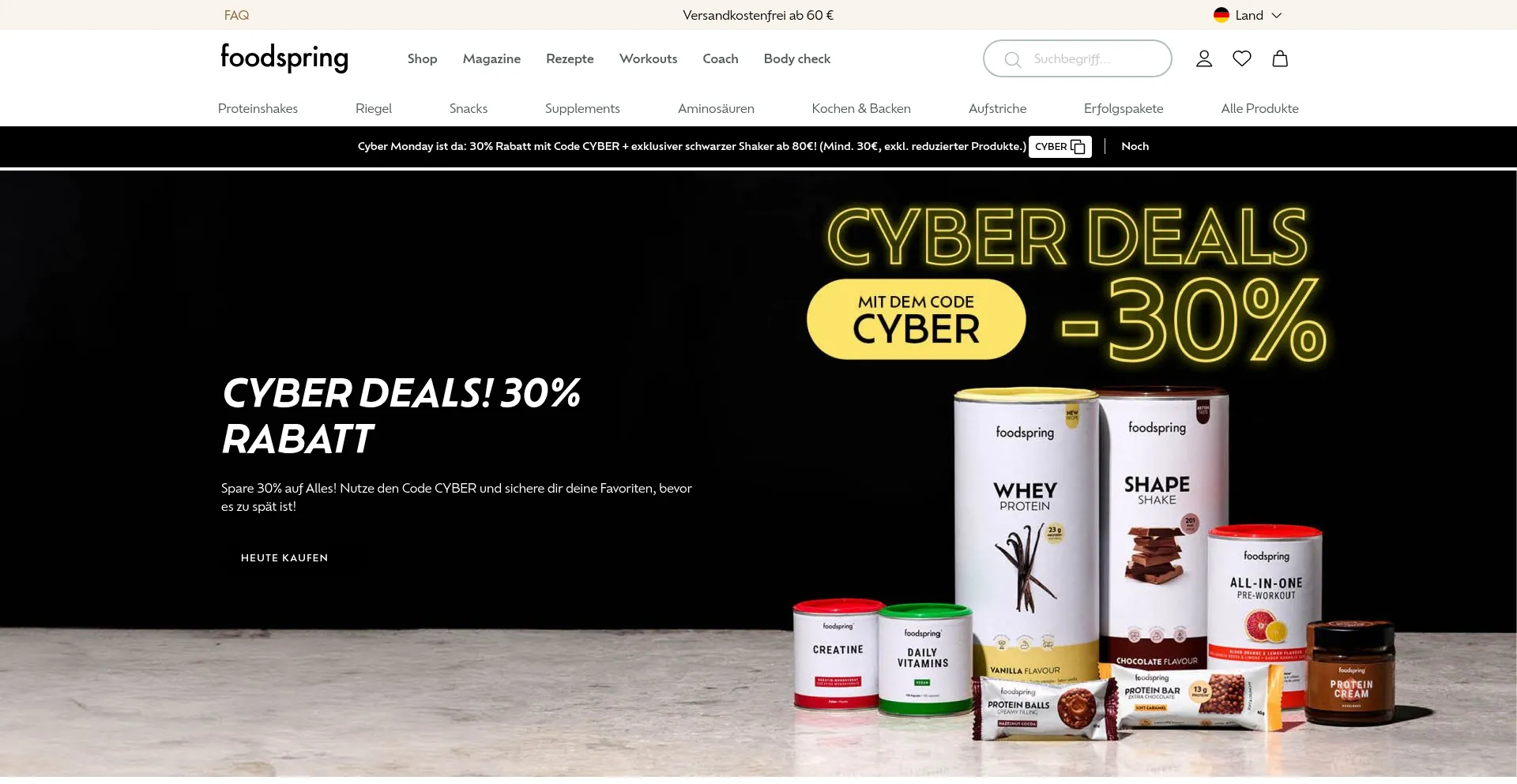 foodspring Black Week - 30% Rabatt auf Alles - Rabatte fĂŒr Proteinpulver und NahrungsergĂ€nzungsmittel