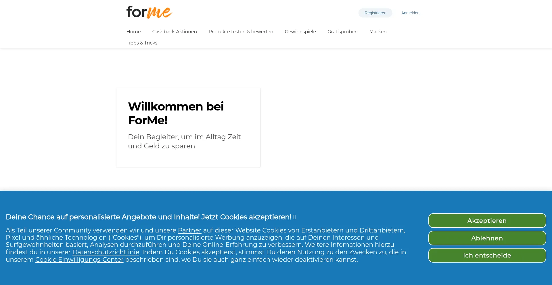 Dein Begleiter, um im Alltag Zeit und Geld zu sparen: Entdecke Cashback-Aktionen, Produkttests, Gratisproben & Gewinnspiele auf ForMe!