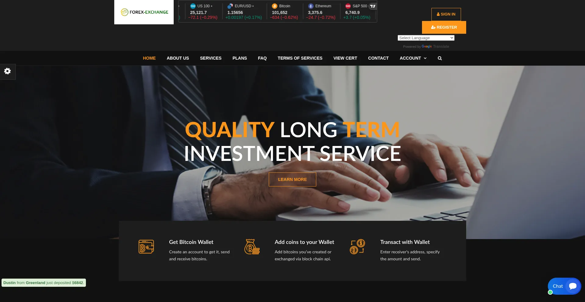 Cryptocurrency, Financial Service, Registration Form, Forex, Bootstrap Framework, Google Translate, Young Domain