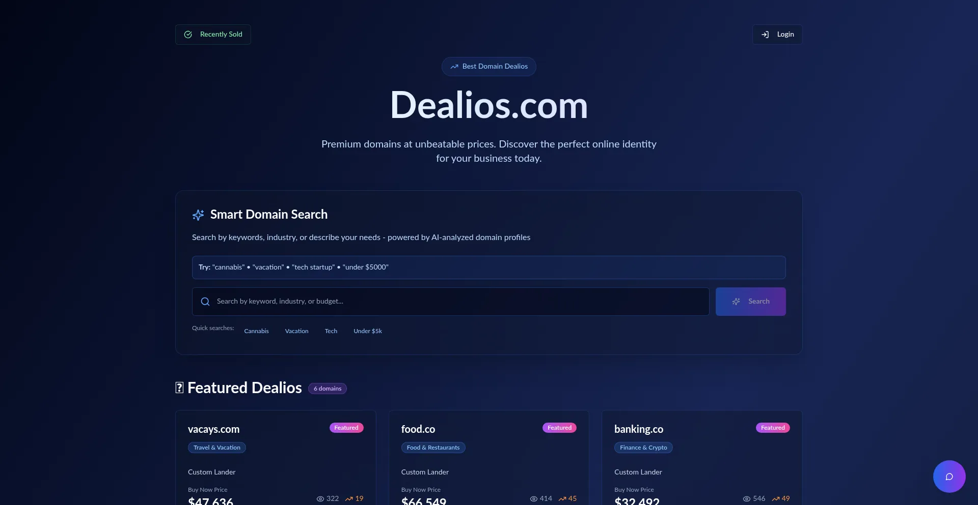 Dealios AI is a futuristic marketplace for premium domain names. Leverage AI-powered search to find your perfect online identity, and let our AI sales assistant negotiate the be...
