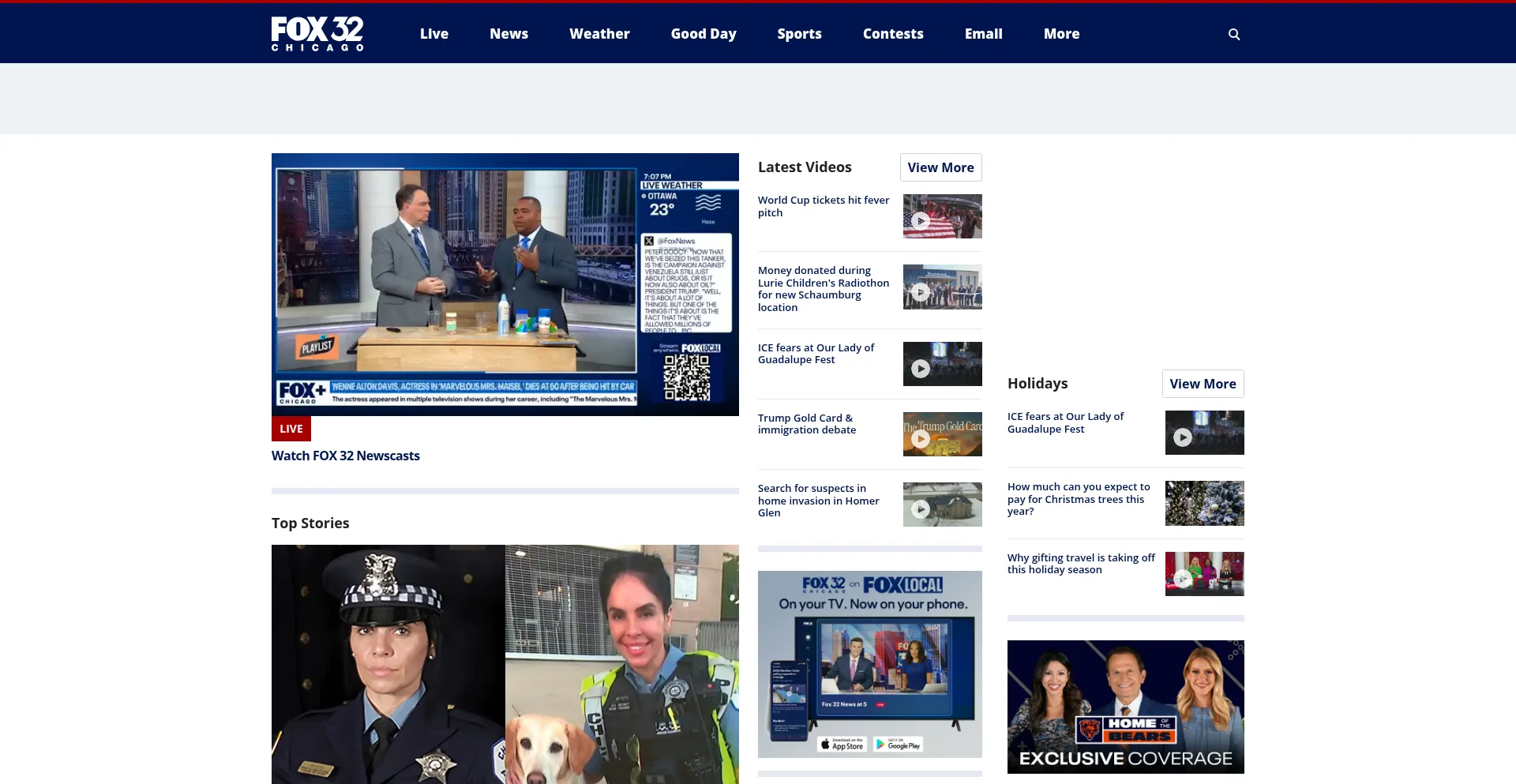 Chicago news, weather, traffic, and sports from FOX 32, serving the Chicago area and Northwest Indiana. Watch breaking news live or see the latest videos from programs like Good...