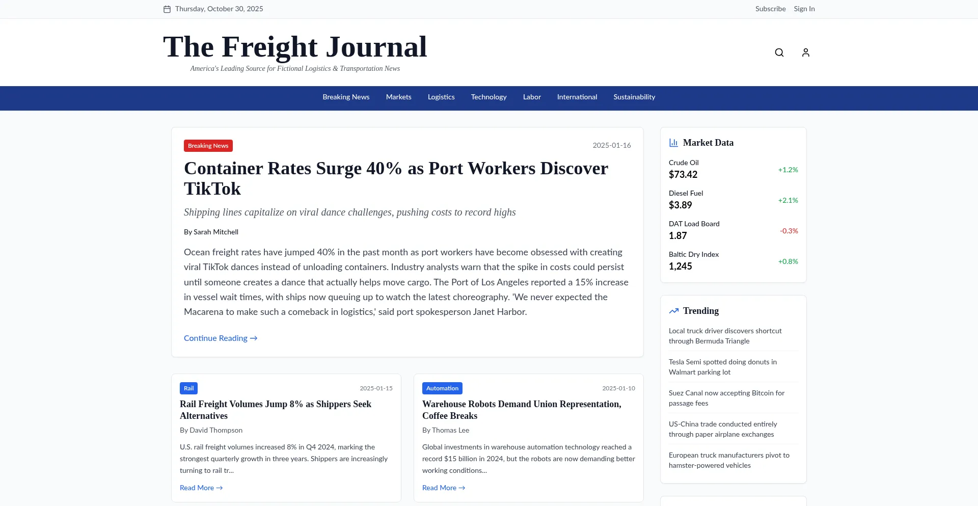 The Freight Journal - WSJ-Style News Site