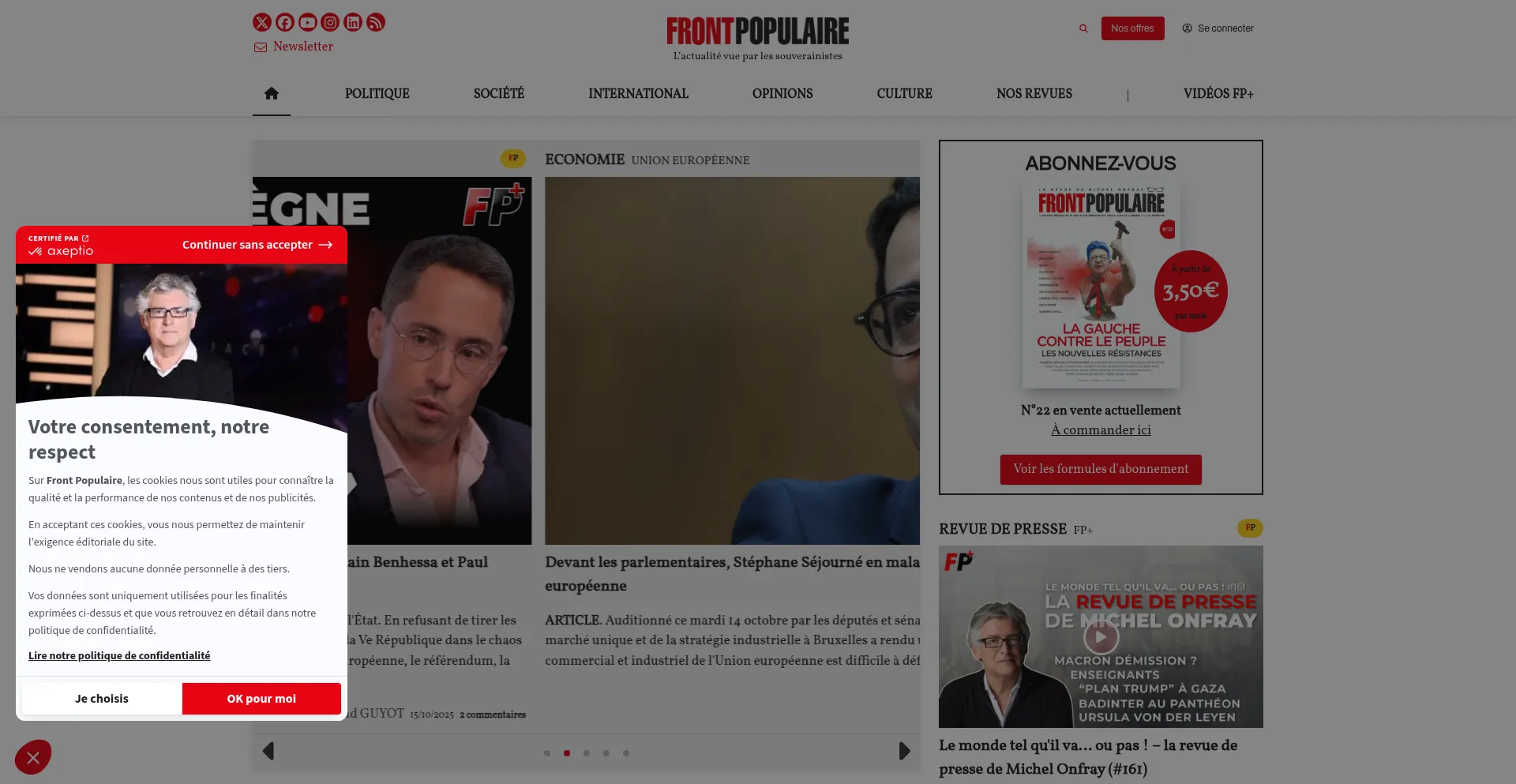 Découvrez Front Populaire, la revue de Michel Onfray dédiée aux idées souverainistes et aux débats d'actualité pour penser une France indépendante et engagée.