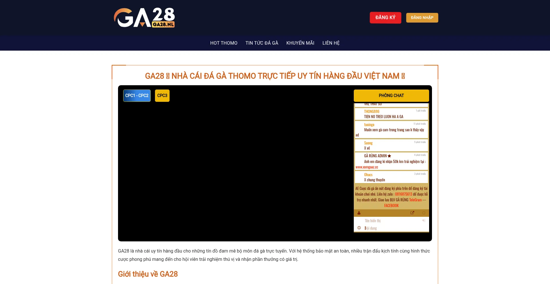 GA28 NHÀ CÁI ĐÁ GÀ THOMO TRá»°C TIáșŸP UY TÍN HÀNG ĐáșŠU VIỆT NAM