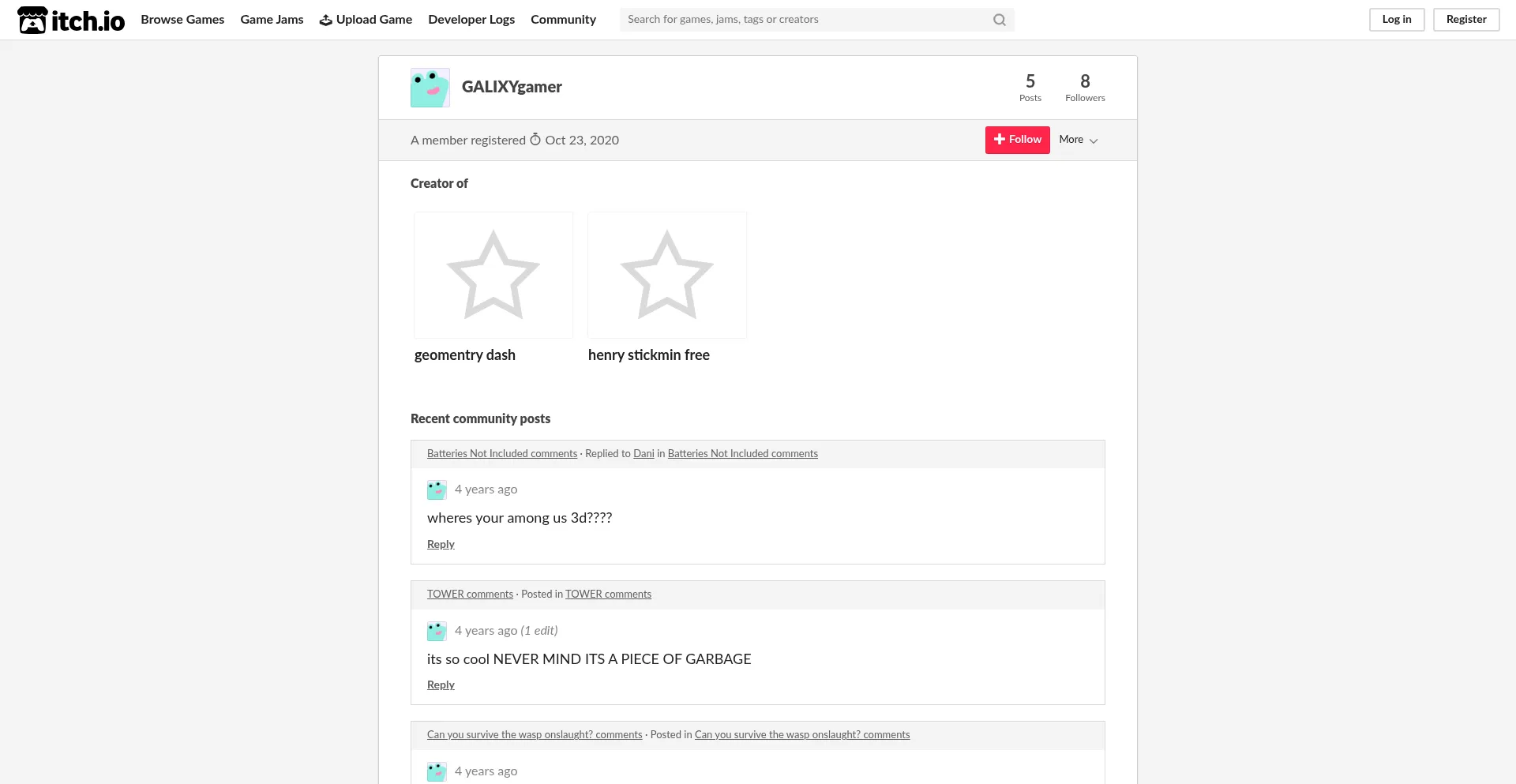Galixygamer.itch.io Avis sur le site web