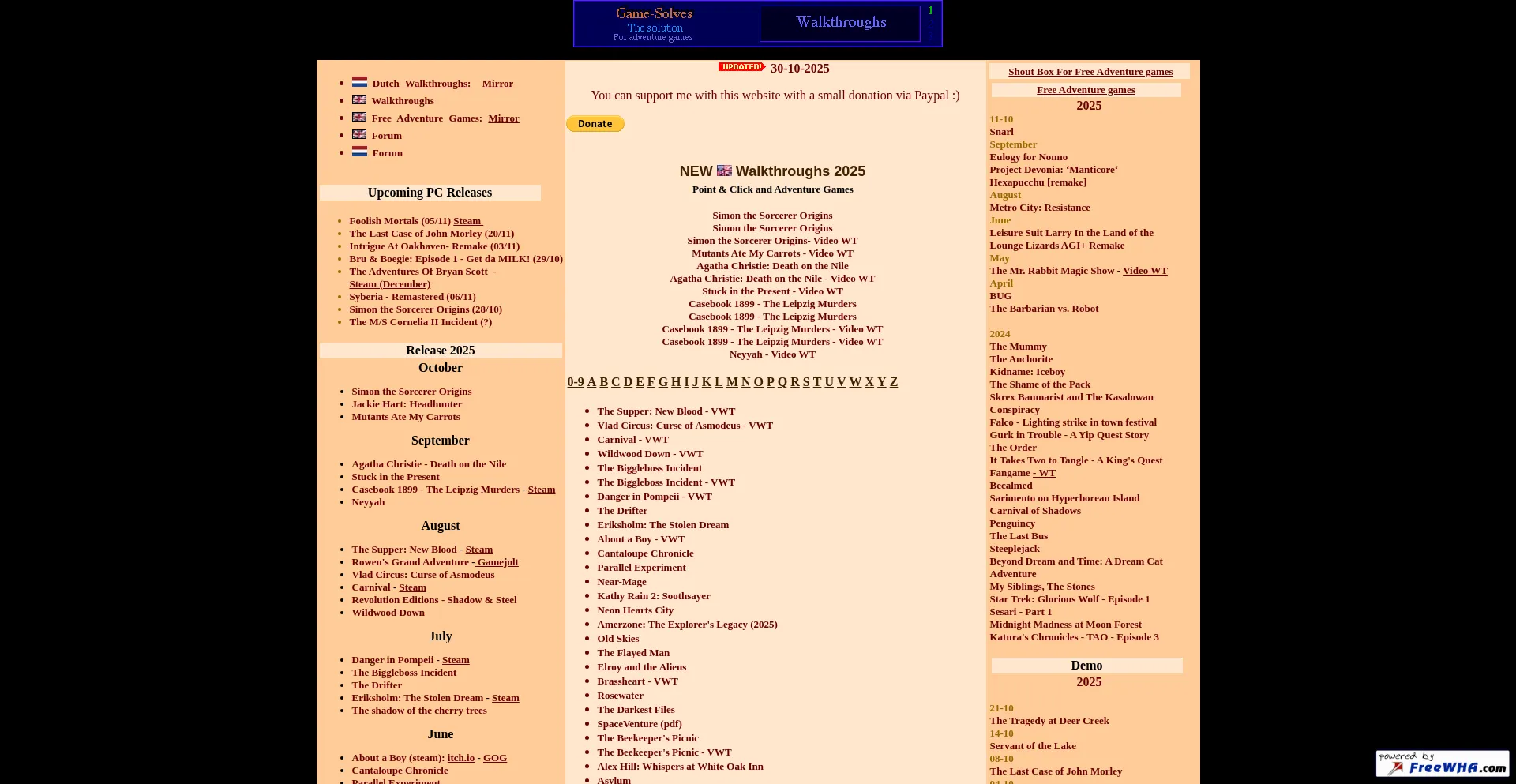 Gamesolves, Walkthroughs, Hints, Oplossingen, strategy guide, Reviews, Adventure Games