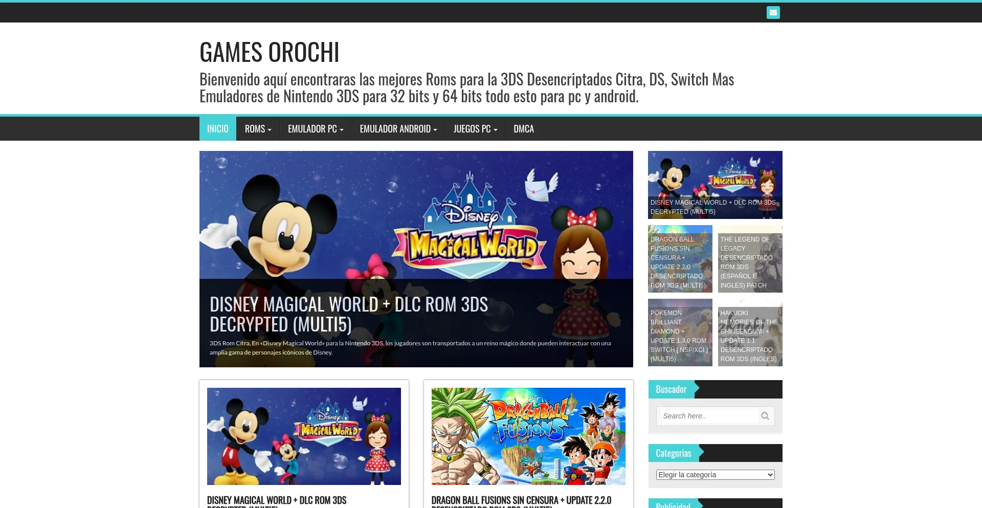GAMES OROCHI - Bienvenido aquĂ­ encontraras las mejores Roms para la 3DS Desencriptados Citra, DS, Switch Mas Emuladores de Nintendo 3DS para 32 bits y 64 bits todo esto para pc y android.