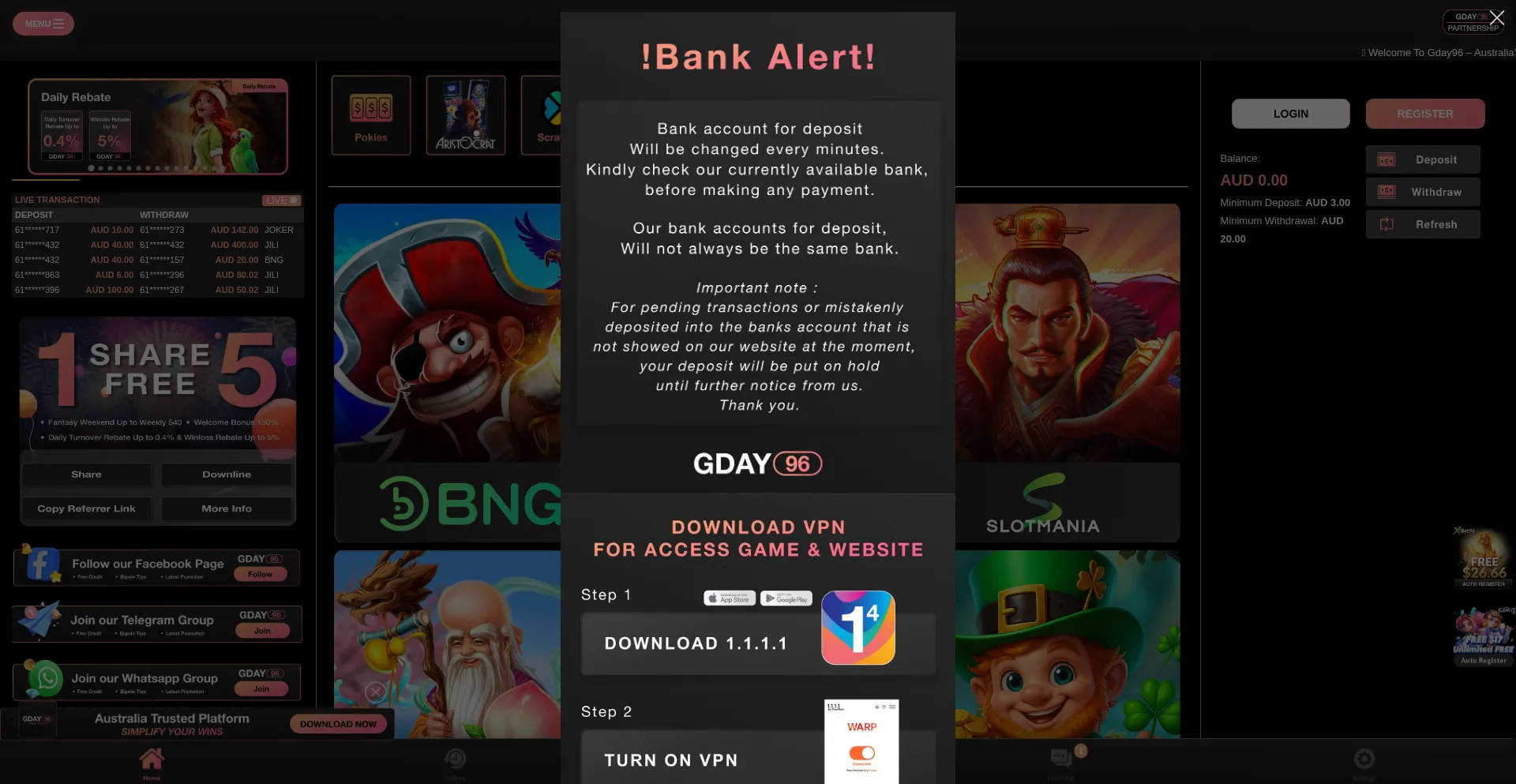 Gday96 or we known as Gday 96, is one of the best place for playing online casino also pokies in Australia this year. Join us now!! and win lot of money.