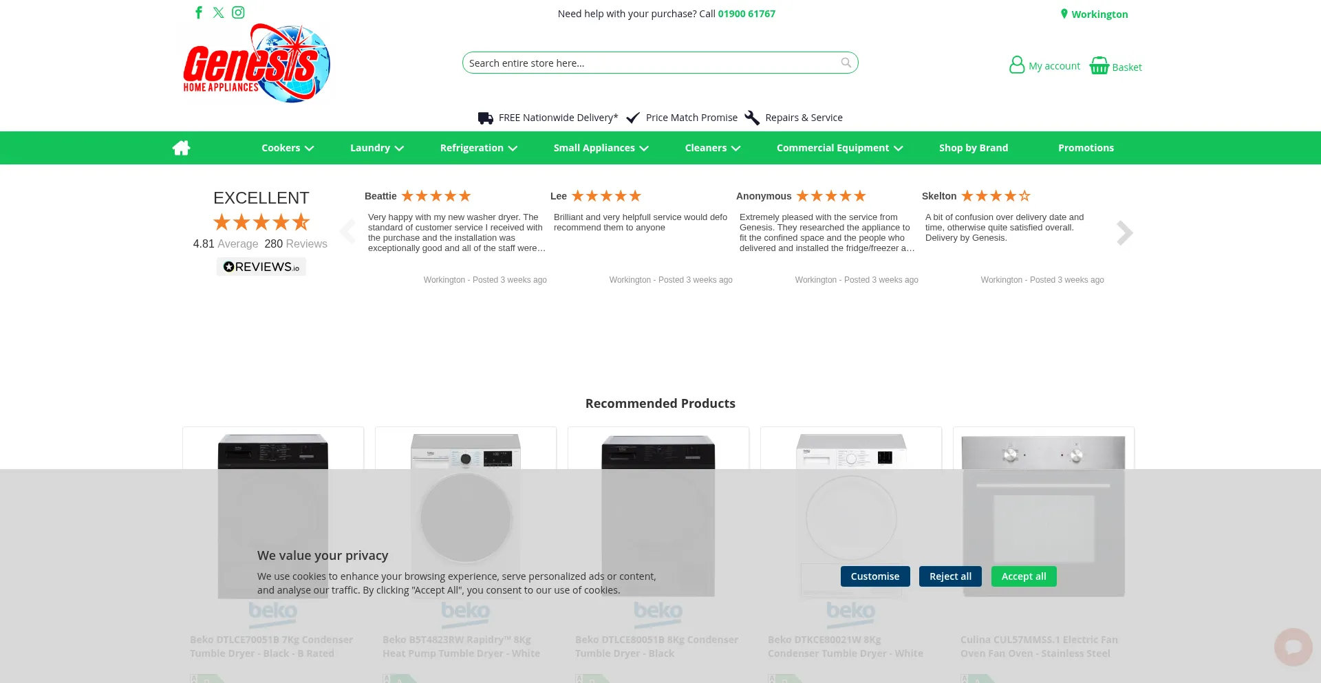 Unbeatable prices and fantastic personal service on the web delivering nationwide. Genesis Home Appliances is an electrical retailer selling washing machines, cookers, range coo...