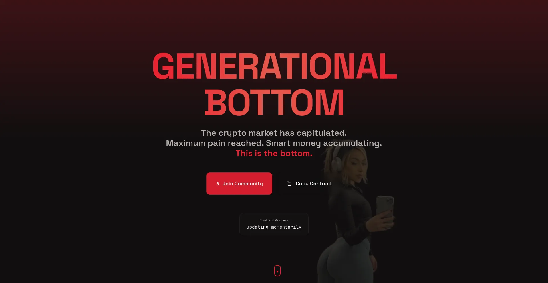 The crypto market has hit rock bottom. Maximum pain reached. Smart money accumulating. This is the generational bottom - join the survivors.