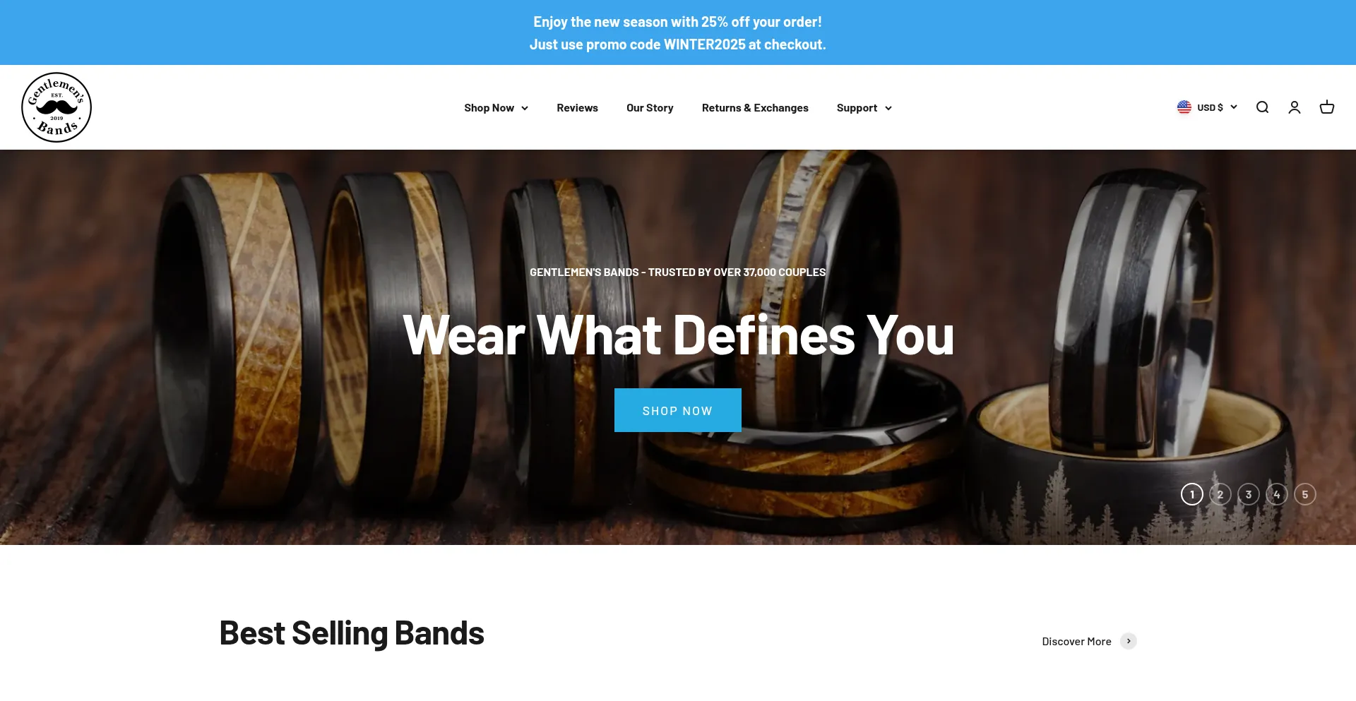 Welcome to Gentlemen’s Bands. We provide affordable handcrafted mens wedding bands and rings for the everyday gentleman. Each ring is uniquely crafted using unique materials. ...