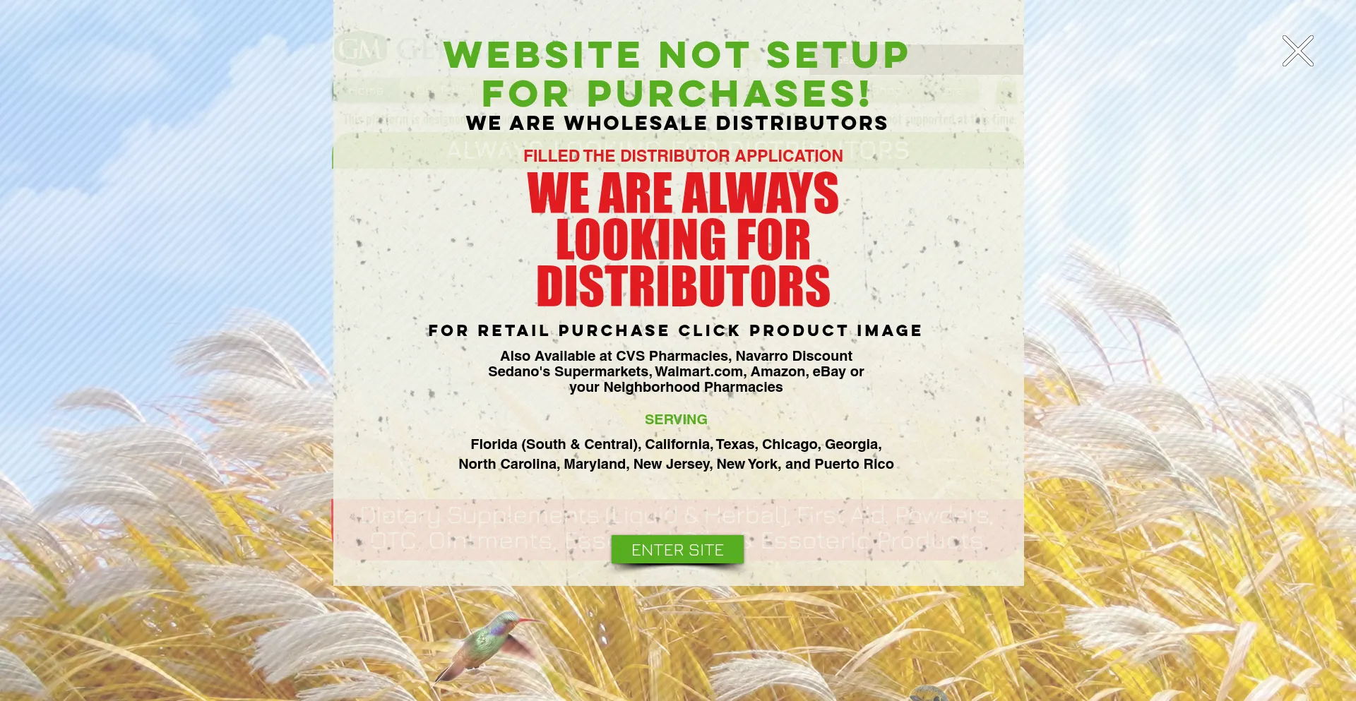 Germa has a complete line of oils, analgesics, ointments, dietary supplements, natural herbs, powders, cosmetics, and mystical waters.