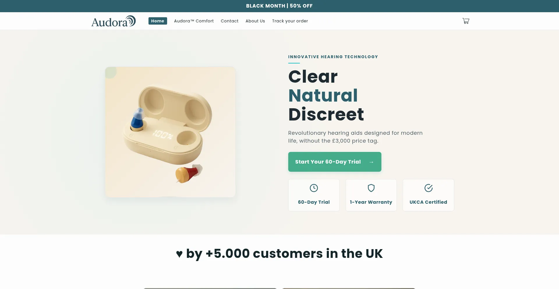 Audoraℱ Hearing Aids – Discreet, comfortable and powerful hearing support with AI noise reduction. Backed by a 2-year warranty and trusted by thousands across the UK.