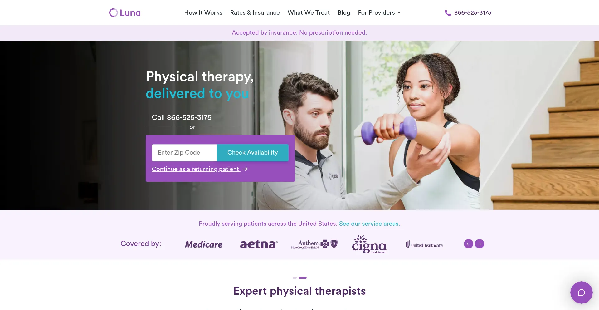 Luna’s physical therapists come to you! We accept all major insurance and Medicare. Serving patients across the United States.