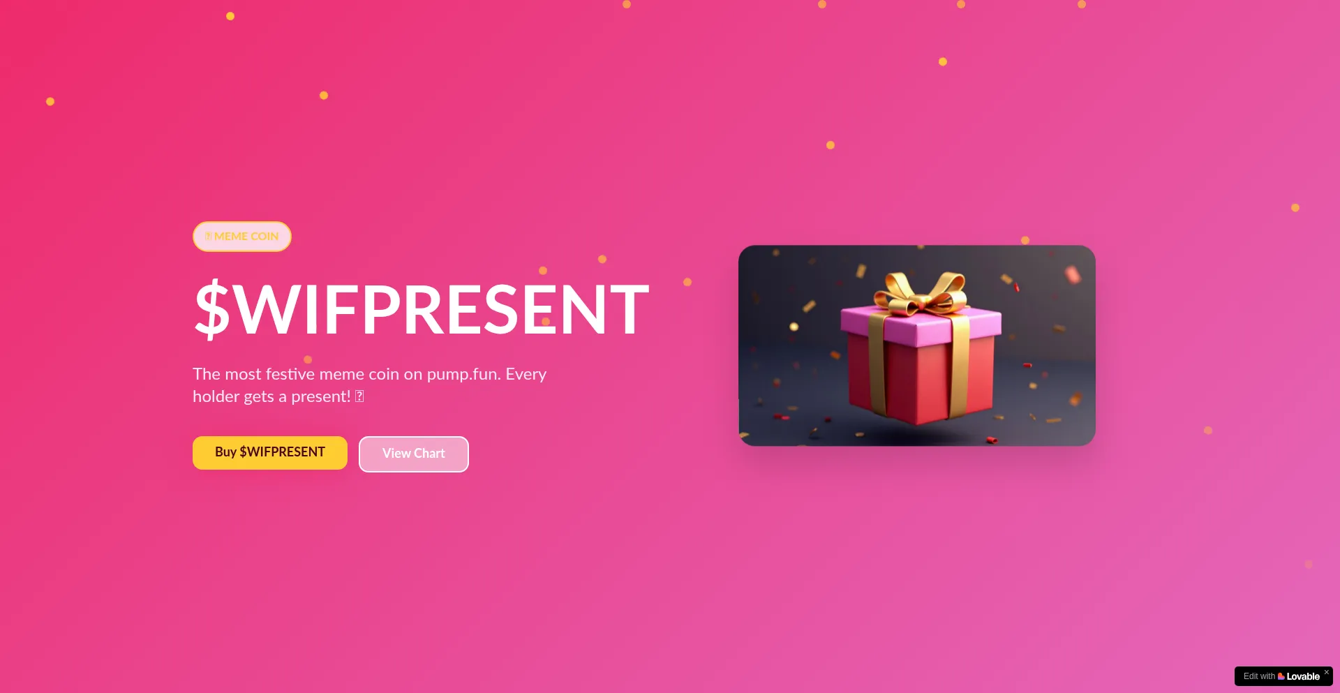 The most festive meme coin on pump.fun. Join the $WIFPRESENT community and celebrate with us! 🎁