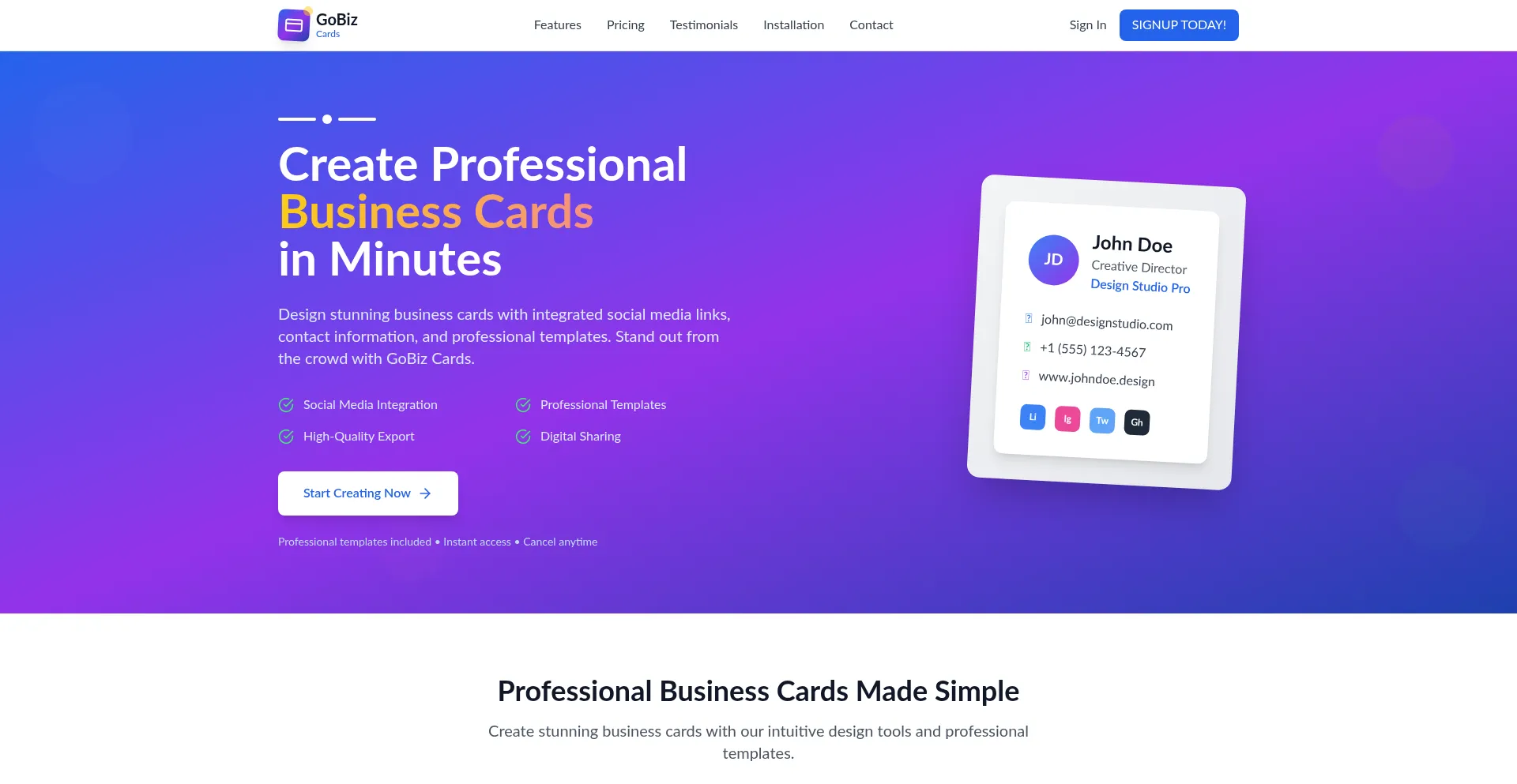 Design stunning business cards with integrated social media links, contact information, and professional templates.