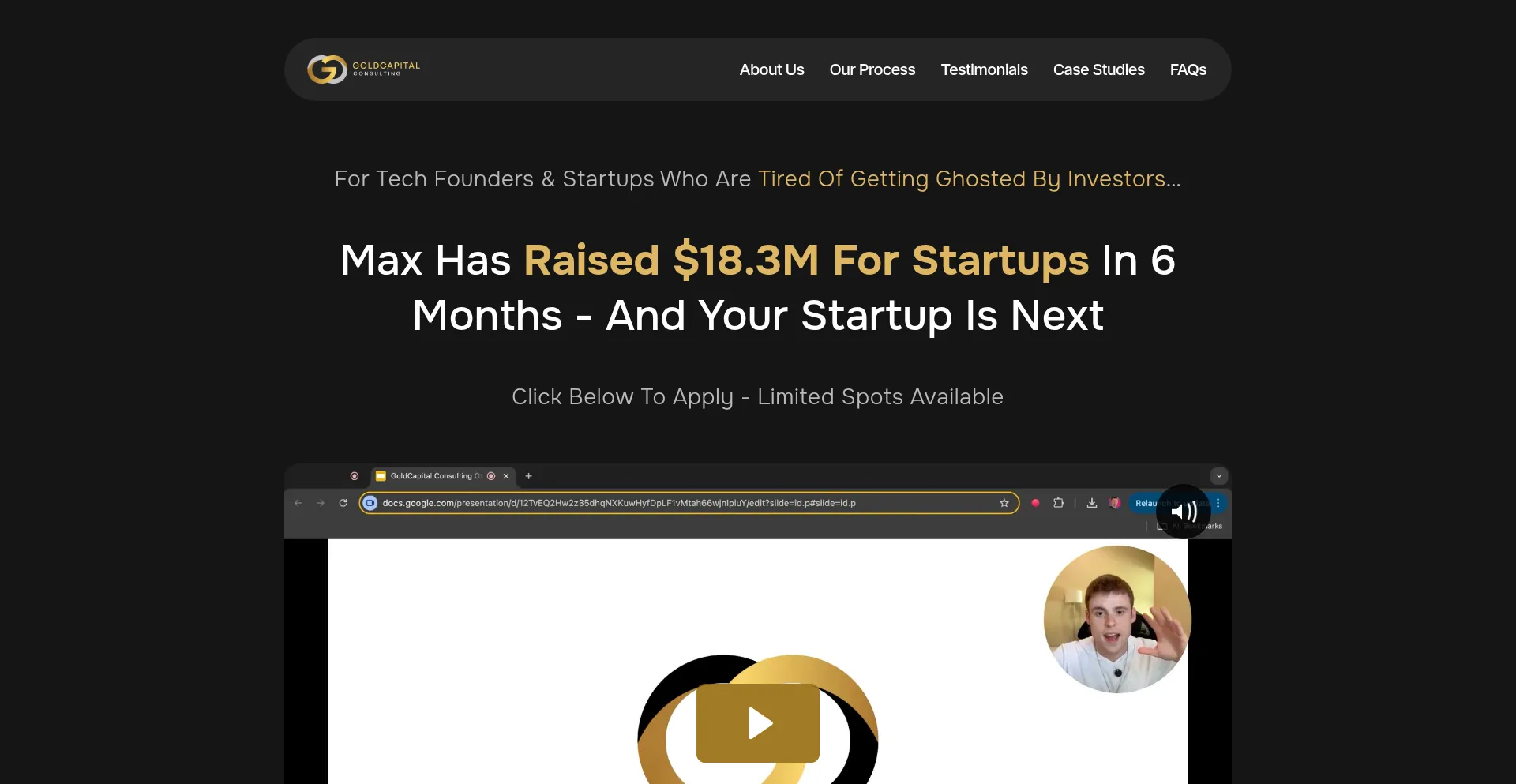 GoldCapital Consulting is a company specialized in helping founders raise funding from venture capital firms using Max Goldberg and his extensive investor network to help you tr...
