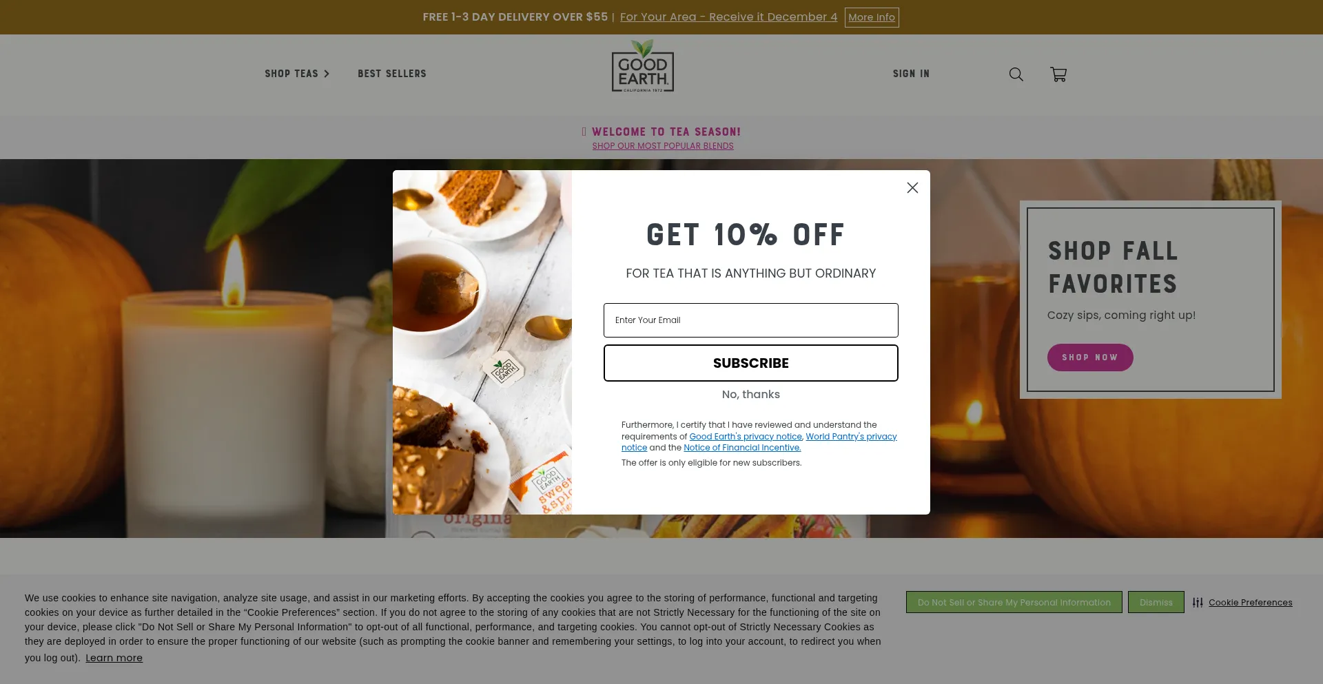 Le site web implémente des mécanismes de consentement aux cookies en conformité avec les réglementations de confidentialité telles que RGPD ou CCPA. Cela démontre que goodearth.com adhÚre aux standards de protection des données et fournit aux utilisateurs un contrÎle sur les pratiques de collecte de données personnelles.