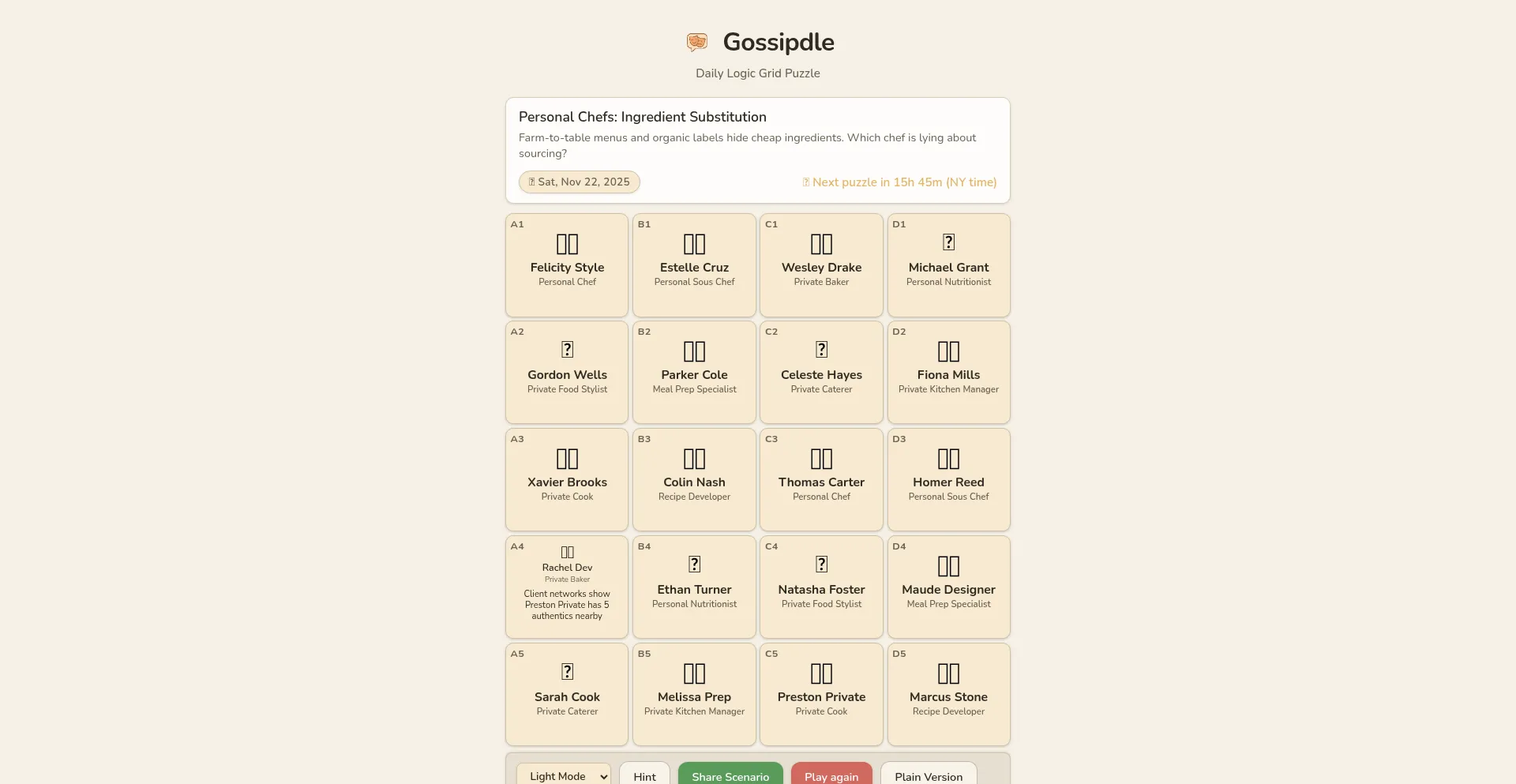 Gossipdle — Daily Logic Grid Puzzle Game