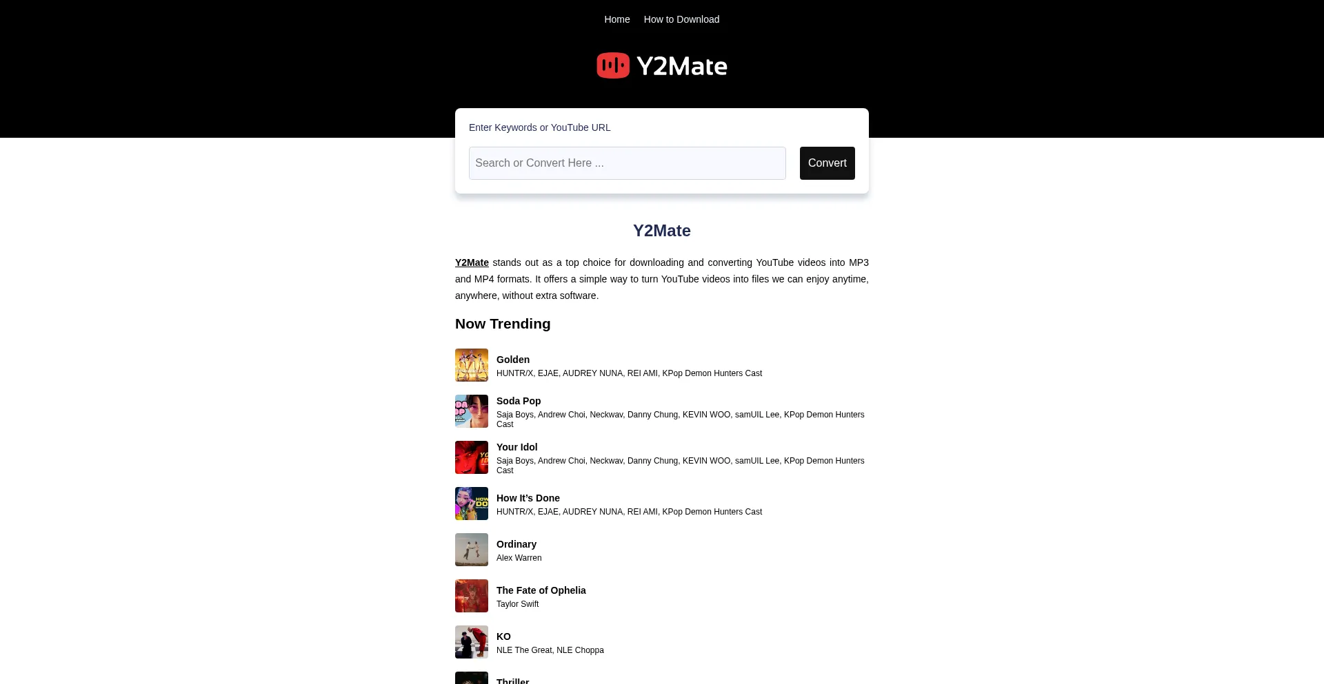 Y2Mate - YouTube to MP3 & MP4 Converter | Fast & Free YouTube Downloader