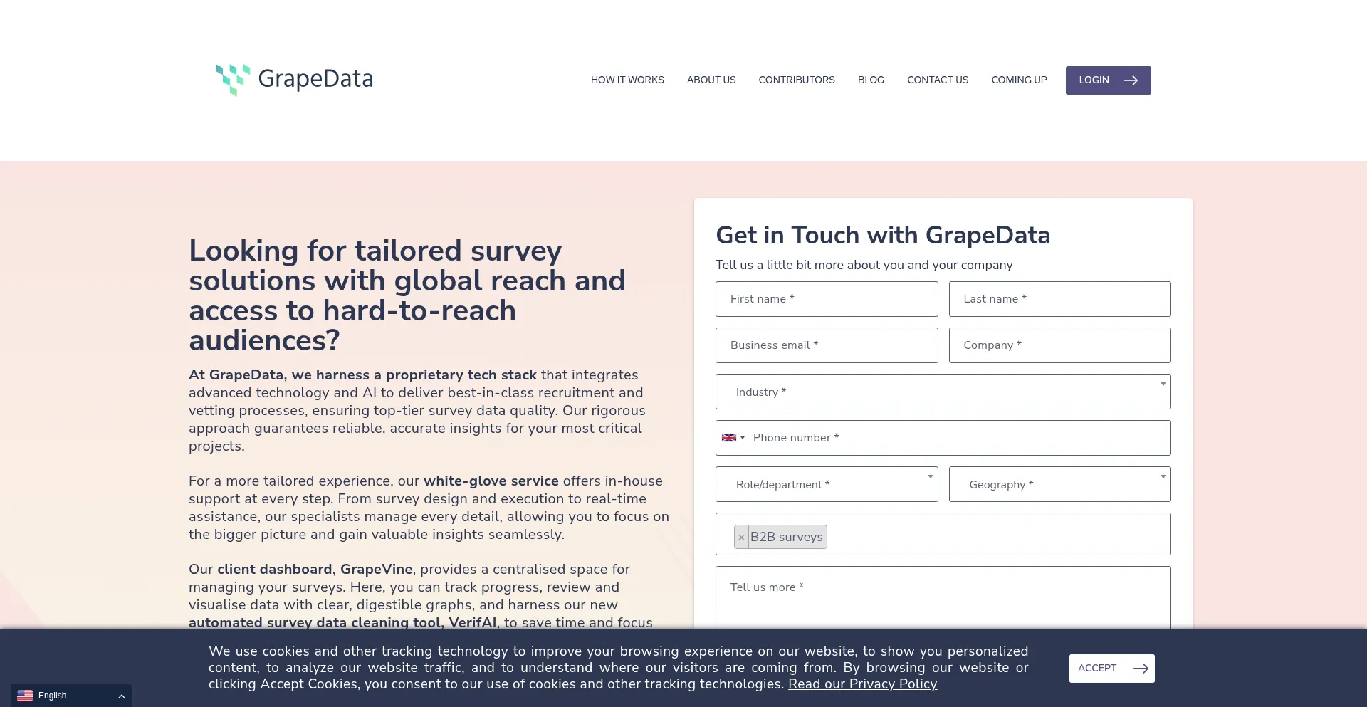 Grapedata is a leading provider of Global B2B surveys. A tech enabled approach to surveys for due diligence with geolocation & meta data screenings | Qualitative surveys & Quant...