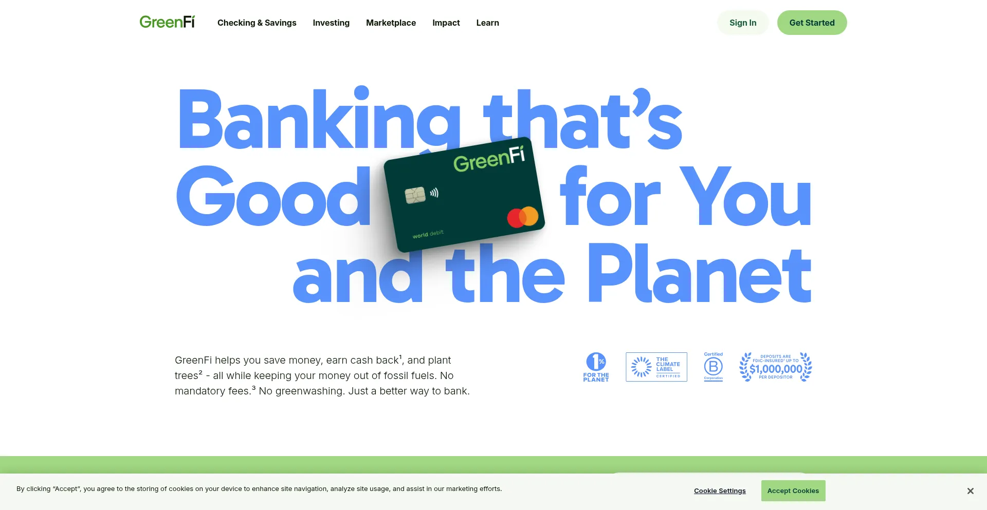 GreenFi is the climate-friendly banking option that's good for your wallet and the planet. Enjoy no hidden fees while earning cash back, planting trees, and keeping your money f...